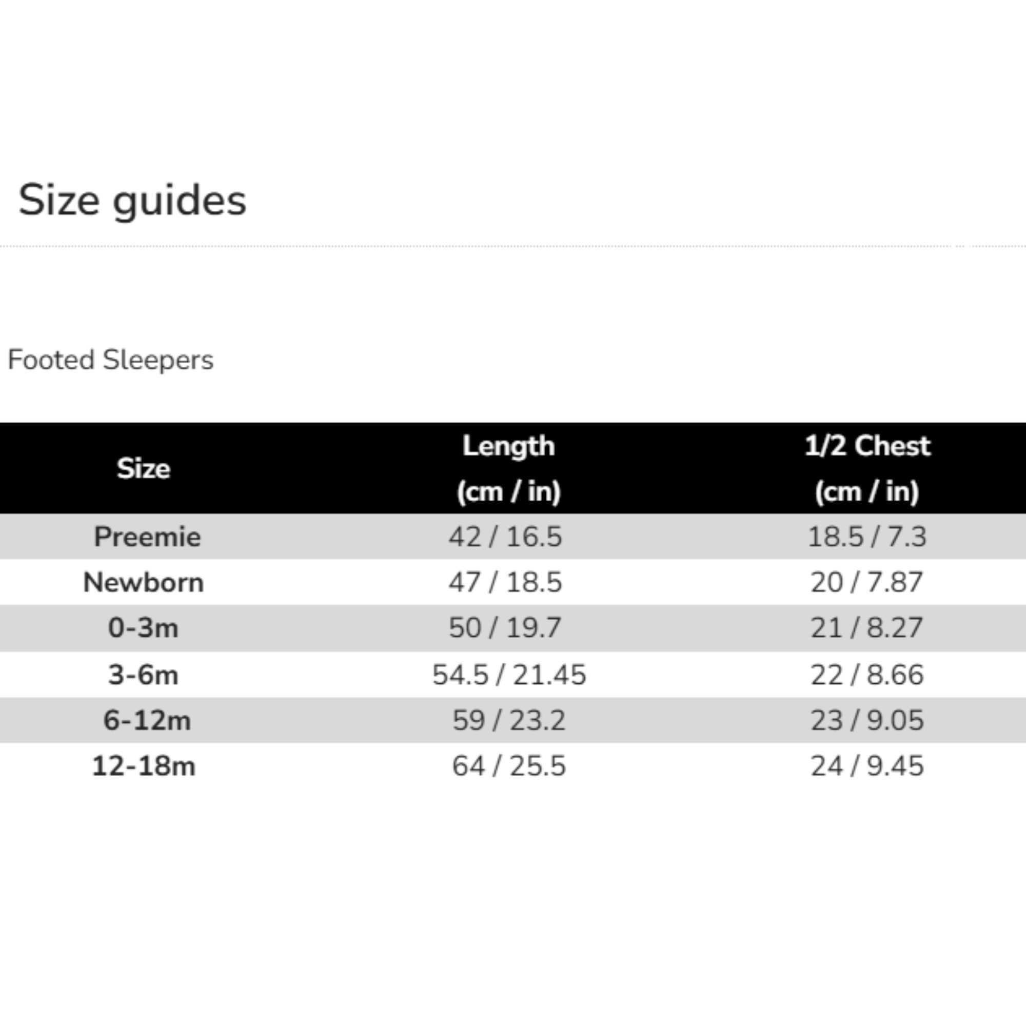 Footed sleeper made in buttery soft bamboo rayon for the perfect night sleep. Bamboo is very breathable and moisture wicking which makes it the ideal fabric for infant sleepwear. 2-way zipper closure makes for easy diaper changes while fold over cuffs* and chin guard keep baby safe from scratches and pinches. Sizes 6-12M & 12-18M have silicone grippers on soles to prevent slipping.