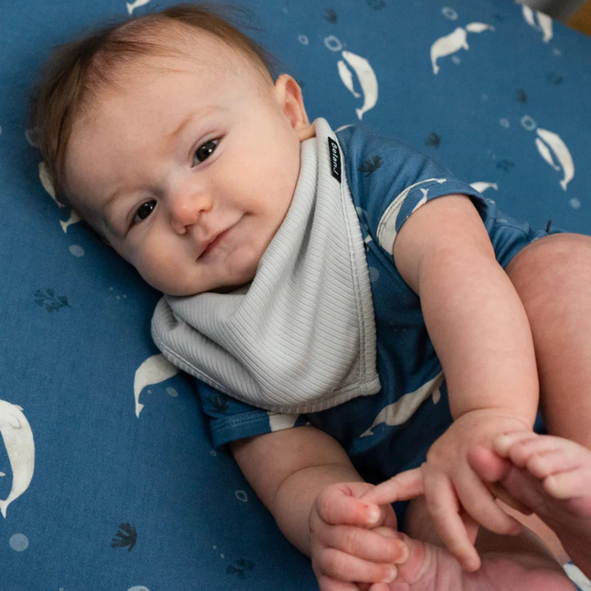 Keep your baby dry and comfortable with BELAN J Ribbed Bandana Bib - Silver Cloud ! Shop now at Kido Bébé.