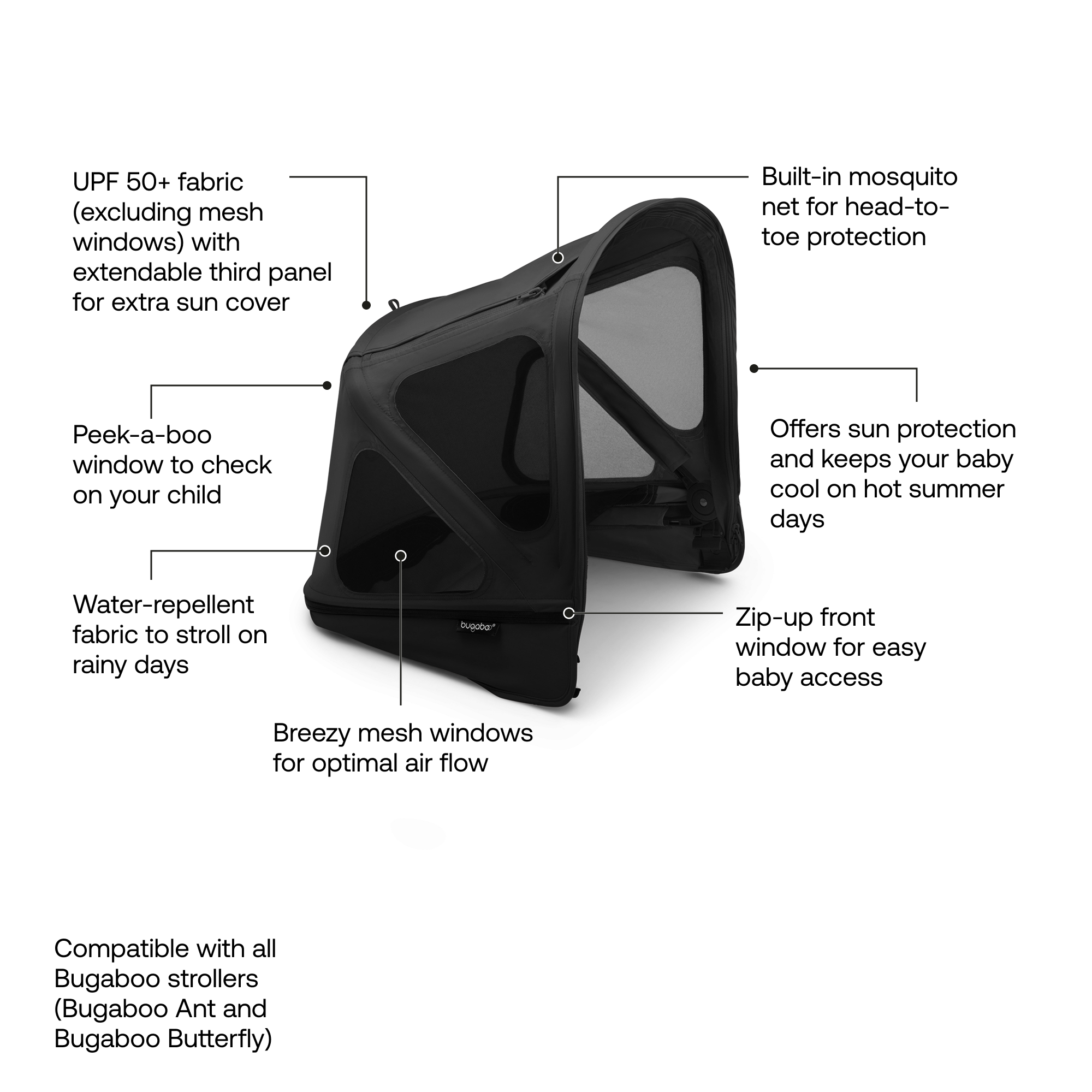 Keep your baby shaded and comfortable – get the Bugaboo Dragonfly Breezy Sun Canopy today at Kido Bebe.