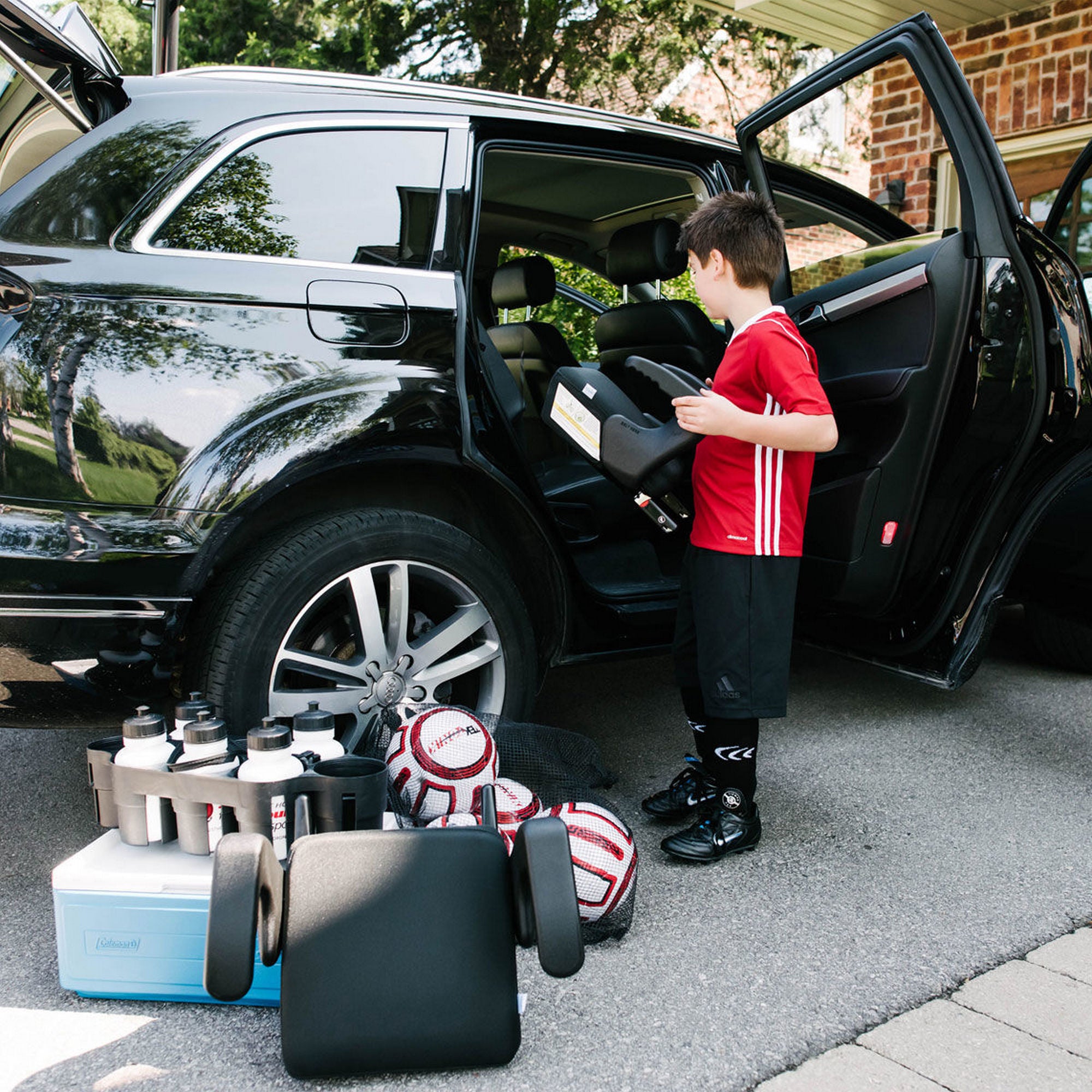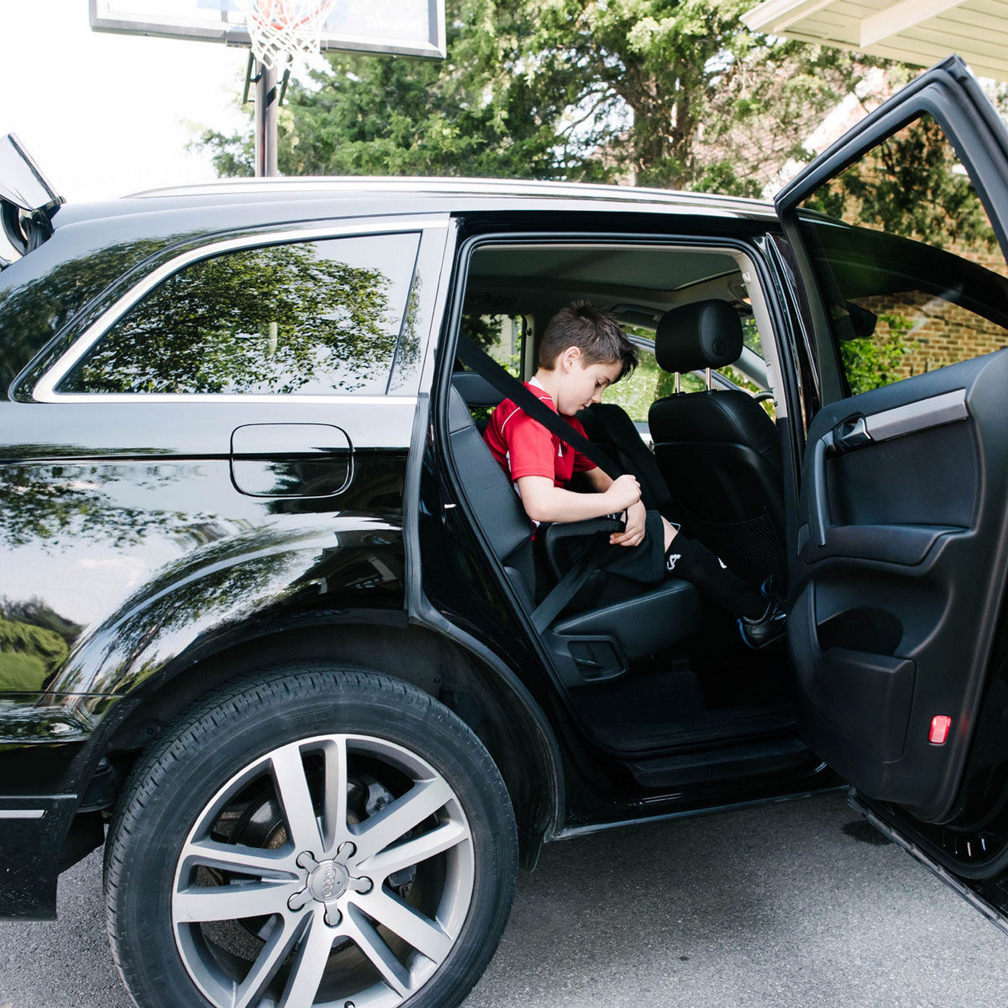- Only booster that enables parents to sit 3 children in an average size sedan