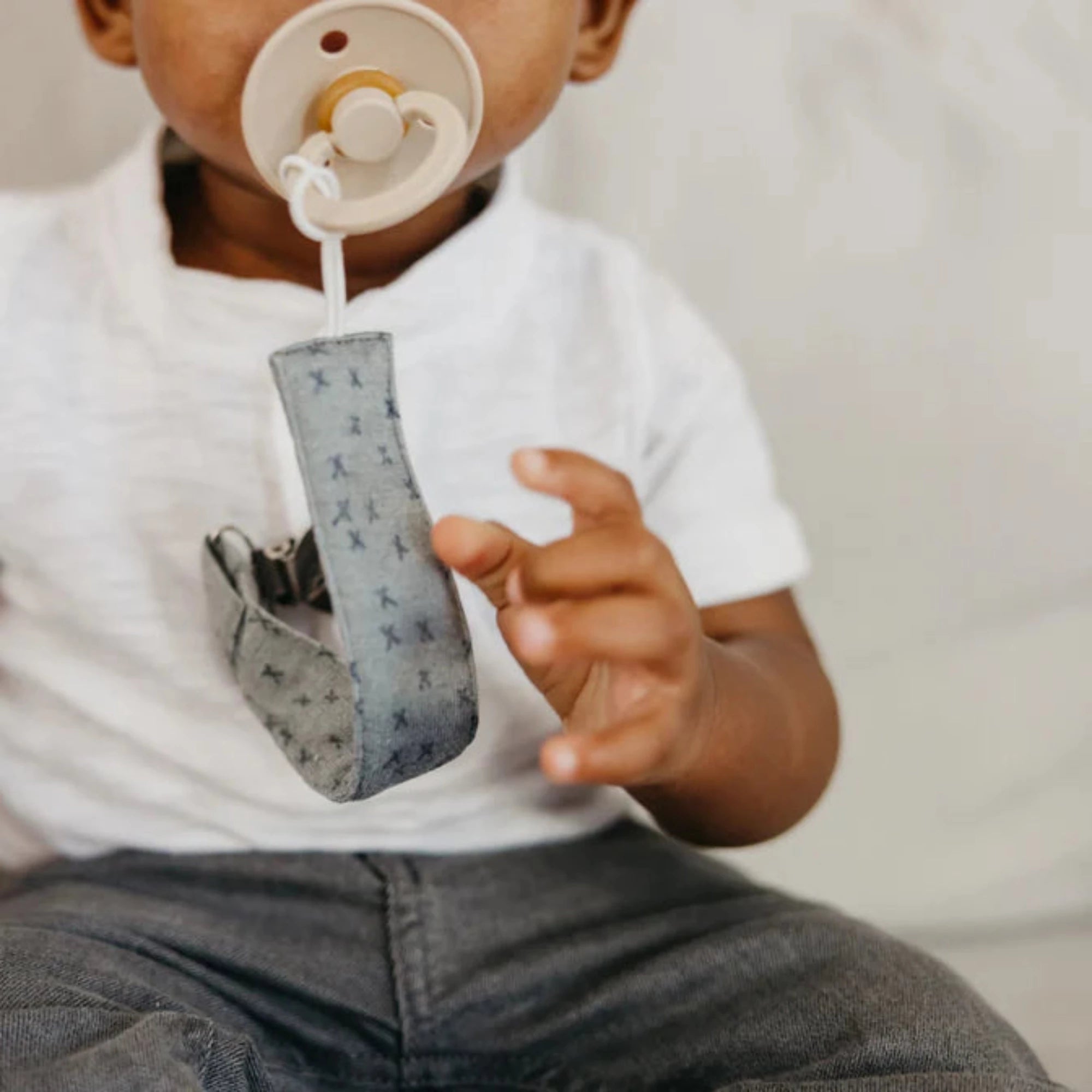 Offering the ultimate blend of fashion and function, our unique Binky Clip features a premium knit strap lined with absorbent fleece to help soak up drool. Simply attach baby's pacifier or teether to one end, then fasten the clip to clothing, blankets or baby gear. Oh, and by the way our set includes three Binky Clips to keep with you wherever you go - no more floor drops or pacifier pick-ups!