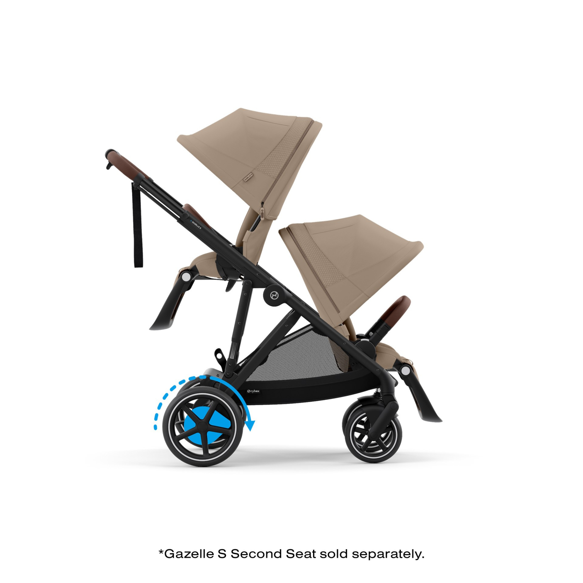 Accessories available for purchase: Gazelle S Second Seat, Gazelle S Cot, Any CYBEX Infant Car Seat, Snack Tray, Parasol, and Summer Seat Liner