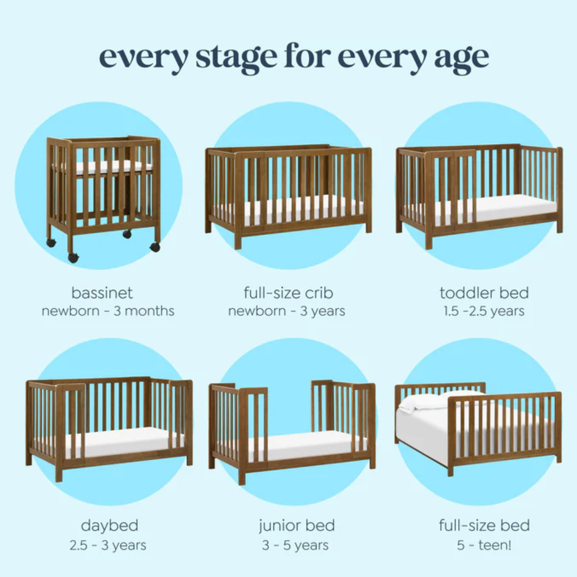 6-in-1 CONVERTIBILITY: Designed to save you the hassle (and extra money!) of buying multiple beds as your little one grows. Easily converts from a bassinet to a full-size crib, toddler bed, day bed, junior bed, and full-size bed (full-size kit #M5789 sold separately).