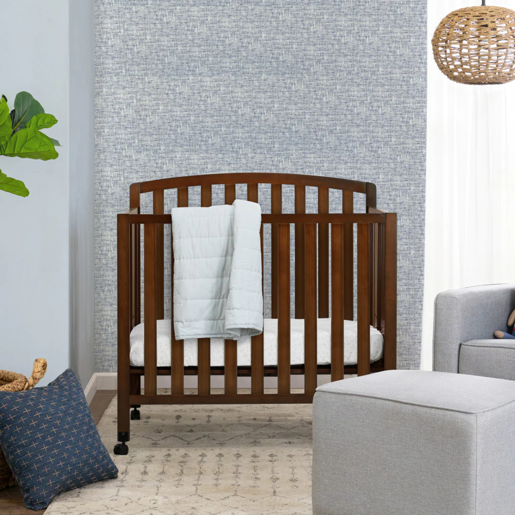 This miniature crib is a great, space-saving alternative to traditional convertible cribs. The Dylan 3-in-1 Folding Convertible Mini Crib is perfect for parents in urban environments looking to free up space when their baby is awake. The Dylan folds down easily for storage and transport, and expands to a twin sized bed with the added purchase of a conversion kit. It also comes with rolling wheels which allow it to glide effortlessly between rooms. Bring style and utility together with this gorgeous piece.