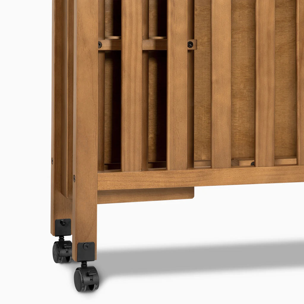 - Portable: Rolling wheels allow you to move the crib around freely and to move aside to clean those hard to reach areas under the crib. Wheels can be locked to keep crib stationary.