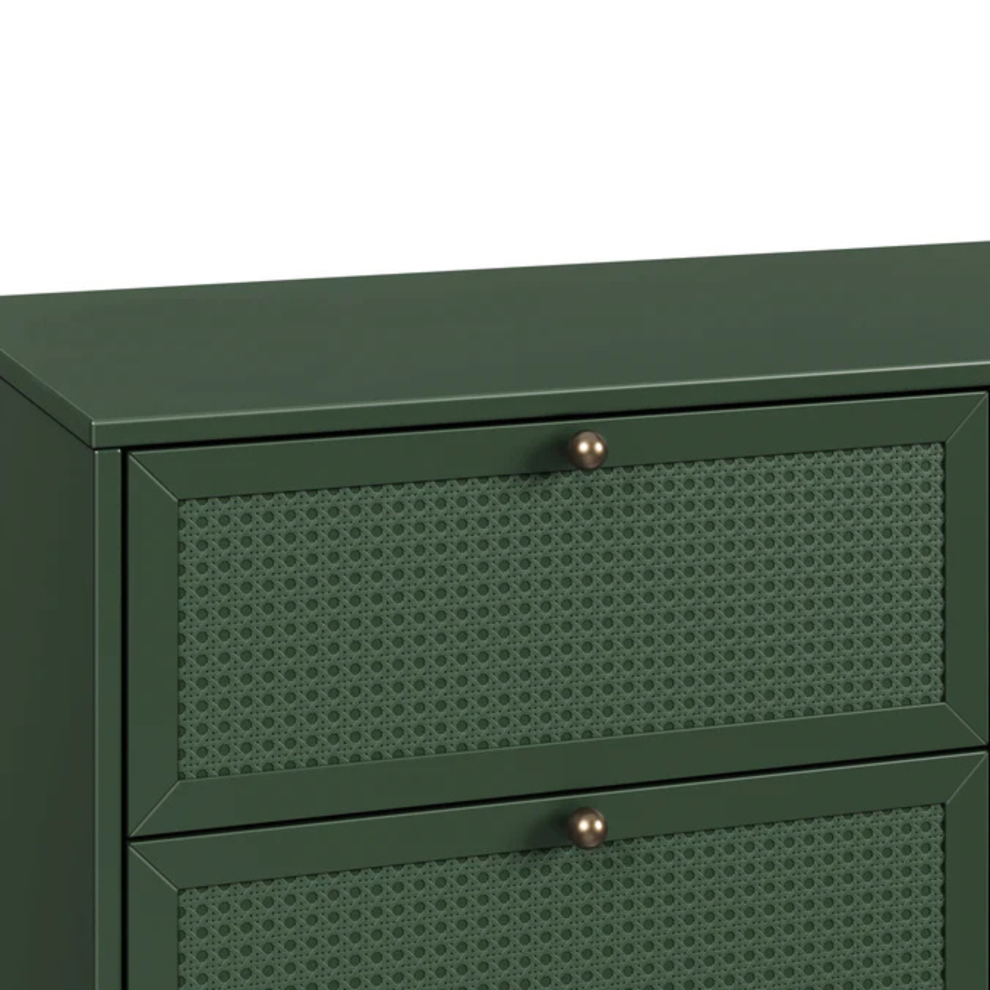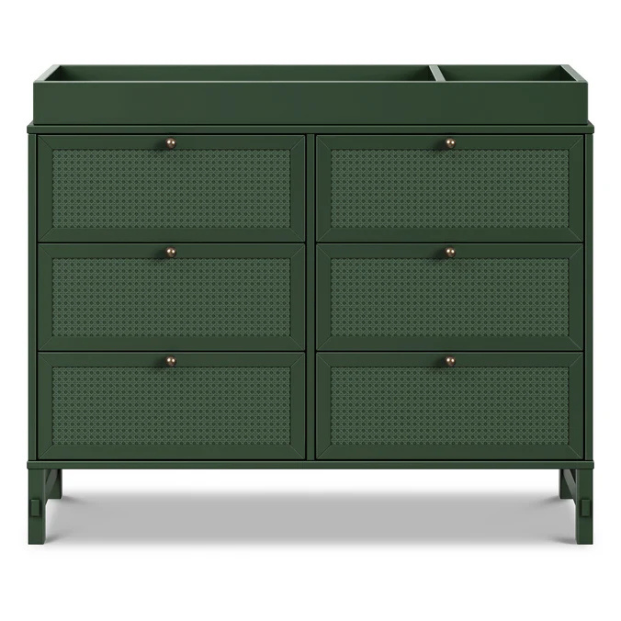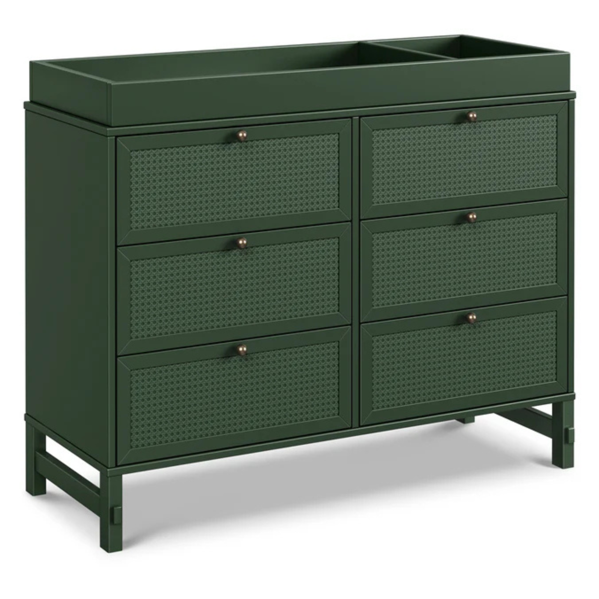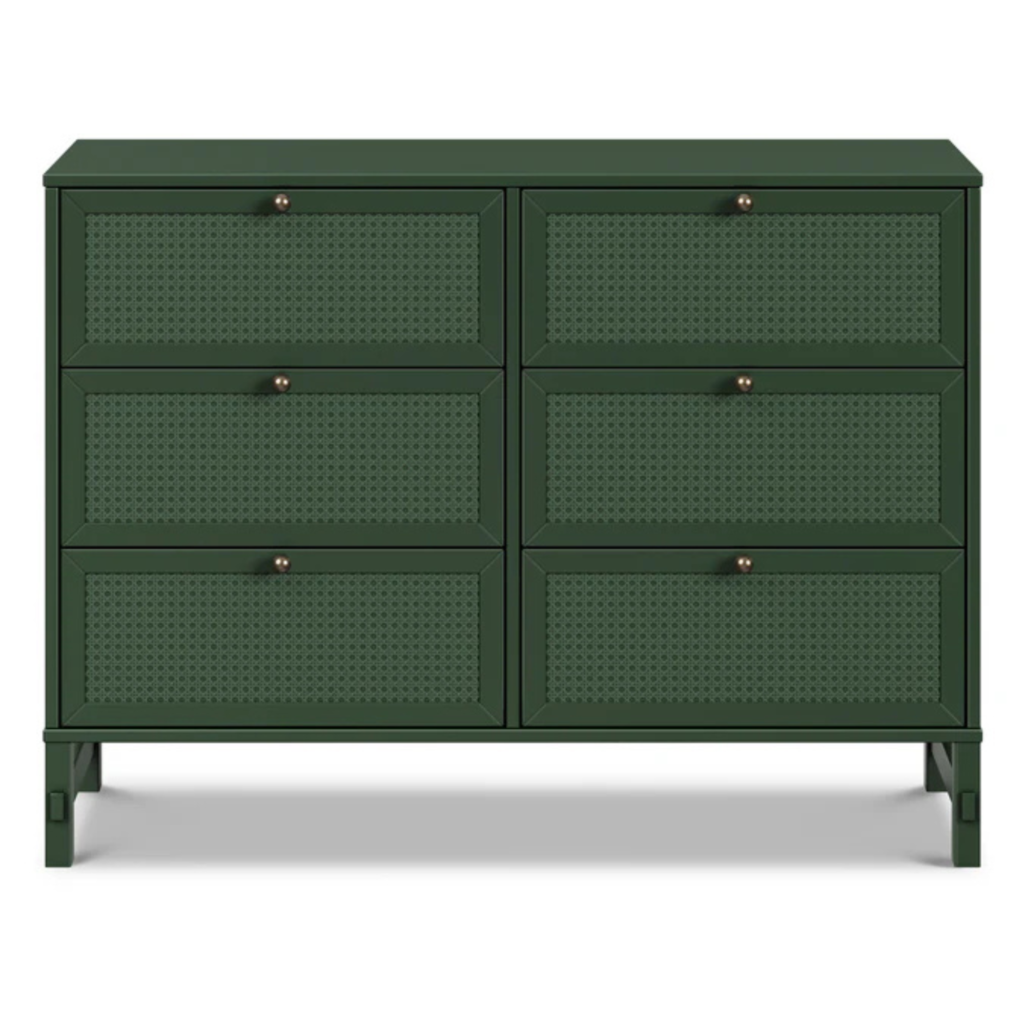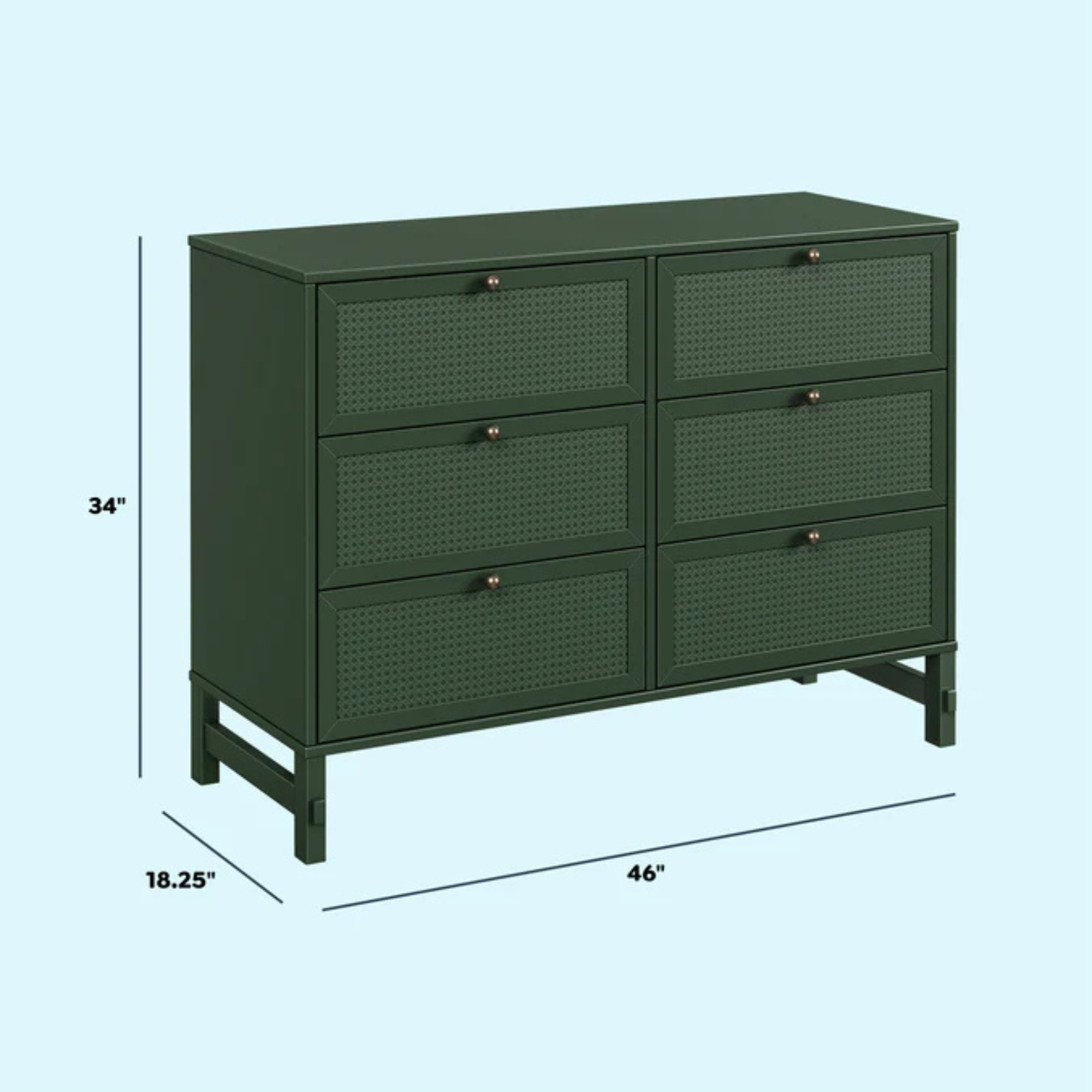 - With its clean lines and refined details, adorned with exquisite pressed cane accents that exude sophistication and charm, this dresser offers both style and functionality.