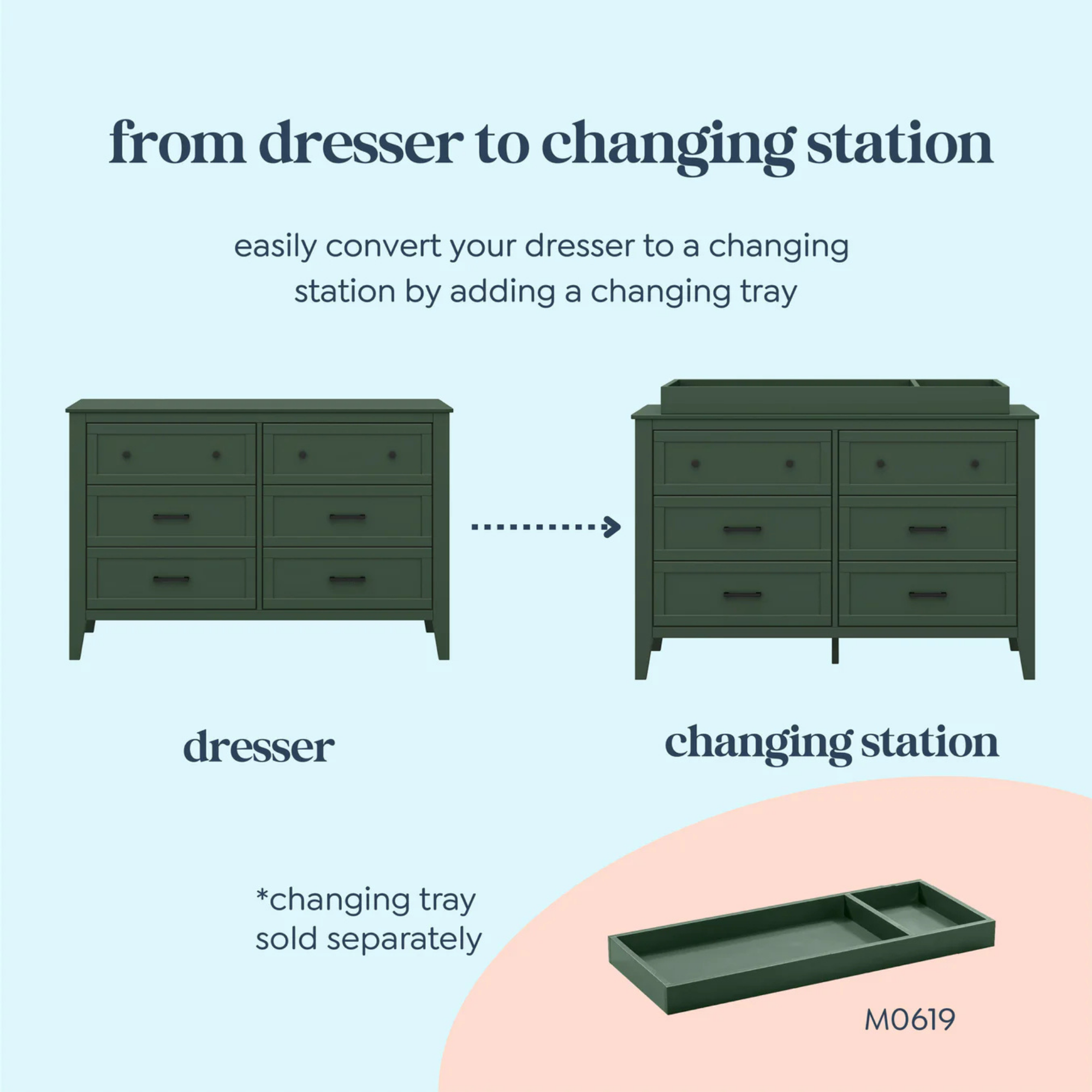 - Versatile design: changing station now. big kid dresser later! this dresser is designed so that you can add a Davinci changing tray to use as a convenient changing station during the baby years.