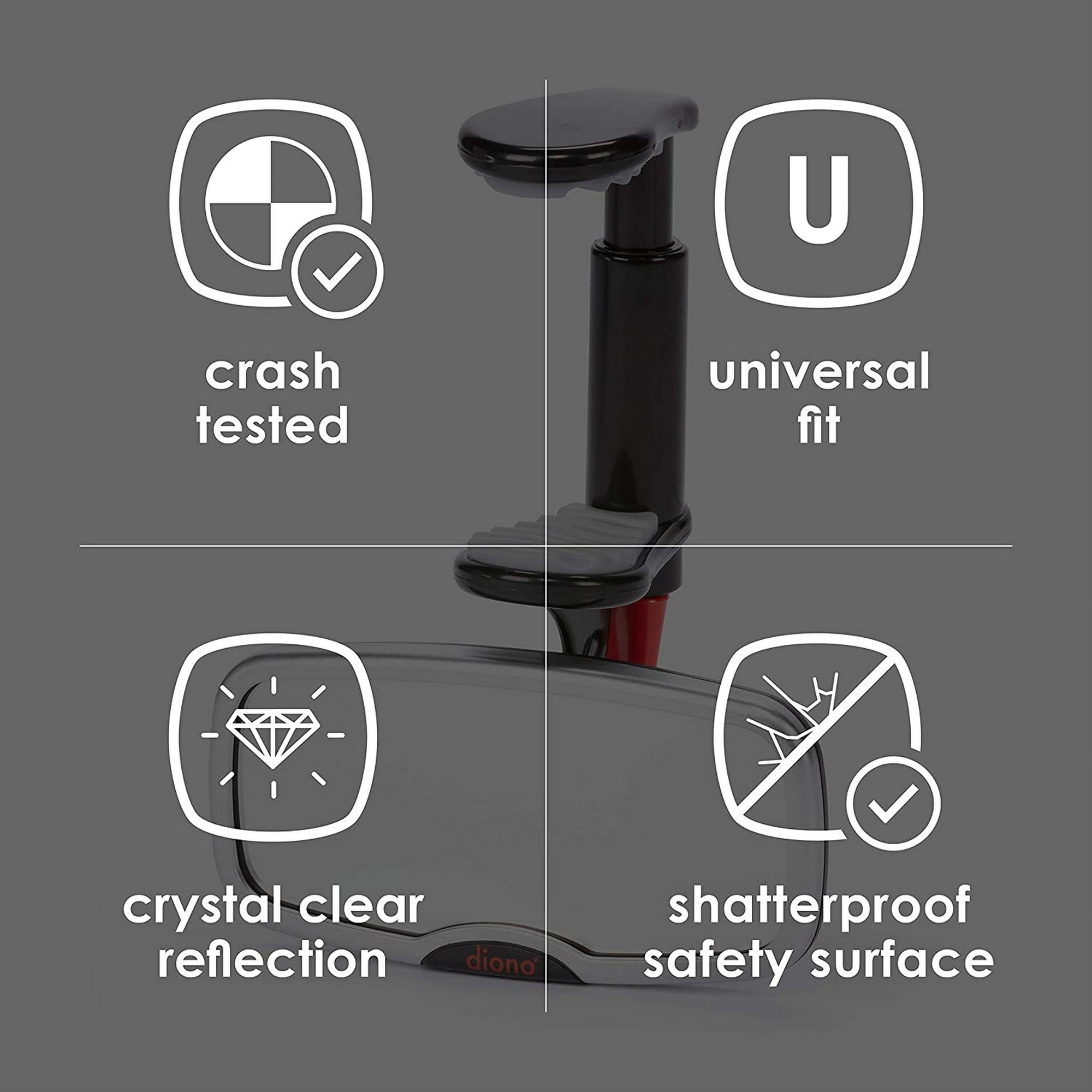 The Diono Universal Mirror attaches easily, offering hassle-free installation. From smaller cars to SUV’s, this universal mirror will easily fit the back of any vehicle headrest or rear-view mirror. It is made from shatterproof materials and is crash tested, making it an ideal mirror for your maximum protection. With an elegant design and high-quality material, the Diono Universal Mirror is the ideal product to keep an eye on your baby.