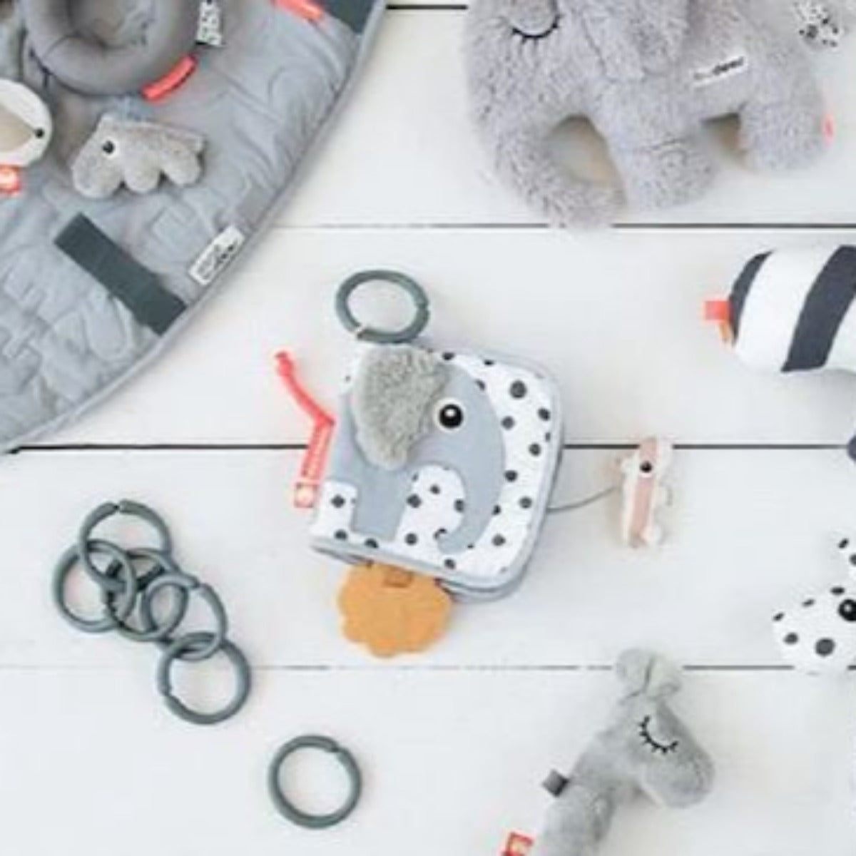 The Elphie Activity book will surely become your baby's favorite new toy! It helps simulate your baby's senses with different textures and sounds. They'll also find a gold mirror inside that smiles right back at you!