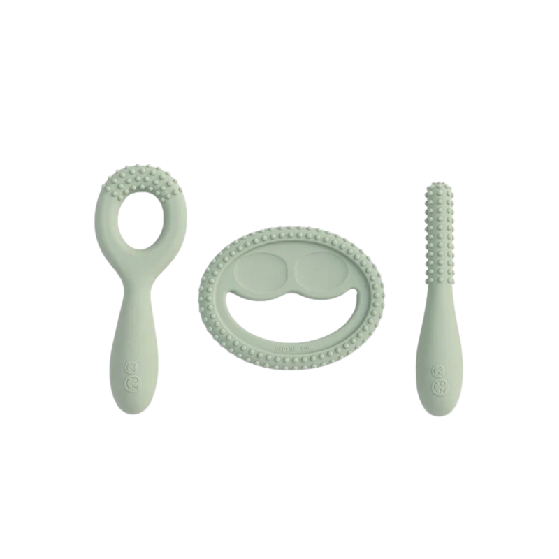 Ezpz Oral Development Tools are sensorimotor devices designed to help babies and toddlers practice their feeding, munching, biting and chewing skills. Each set includes 3 pieces (Loop, Smile and Stick Development Tools).