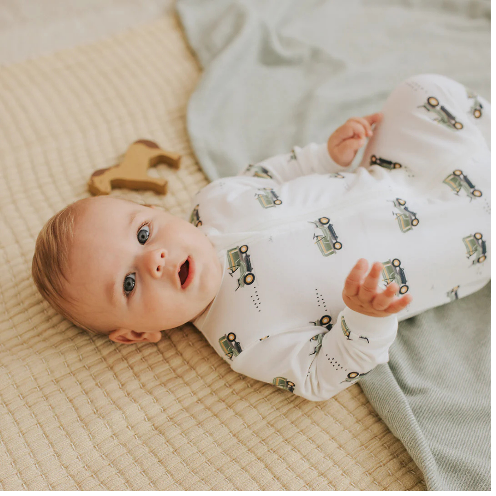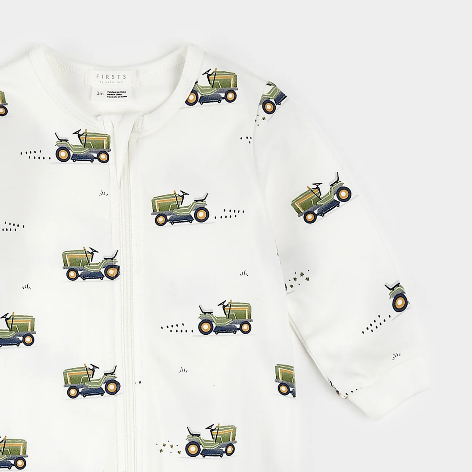 Complete the look and cuddle in comfort—shop the FIRSTS Lawnmower Print Sleeper now at Kido Bébé and create cozy memories with the whole family!