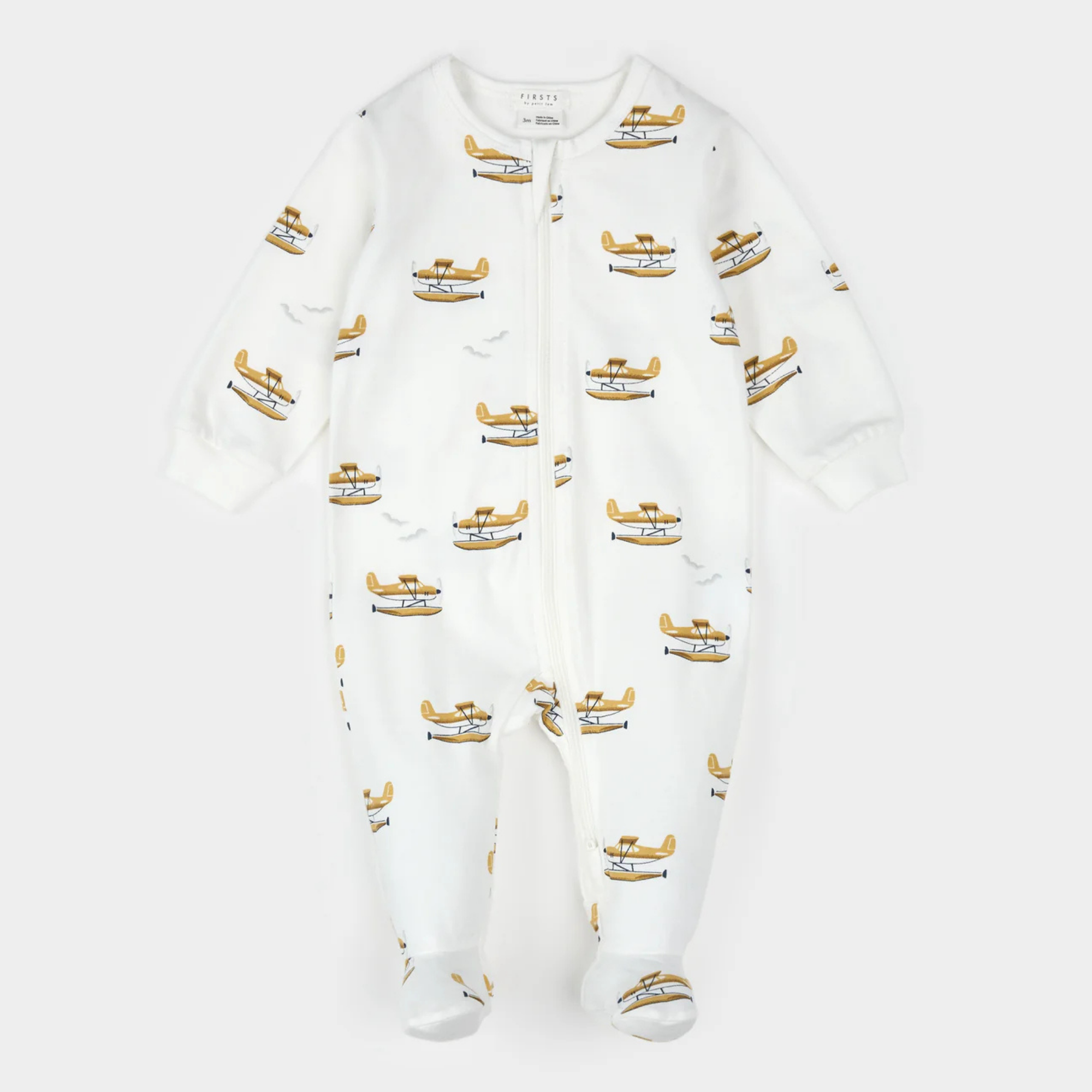 Shop FIRSTS Seaplane Print on Off-White Sleeper now at Kido Bébé and let your little one drift into dreamland in cozy, organic comfort!