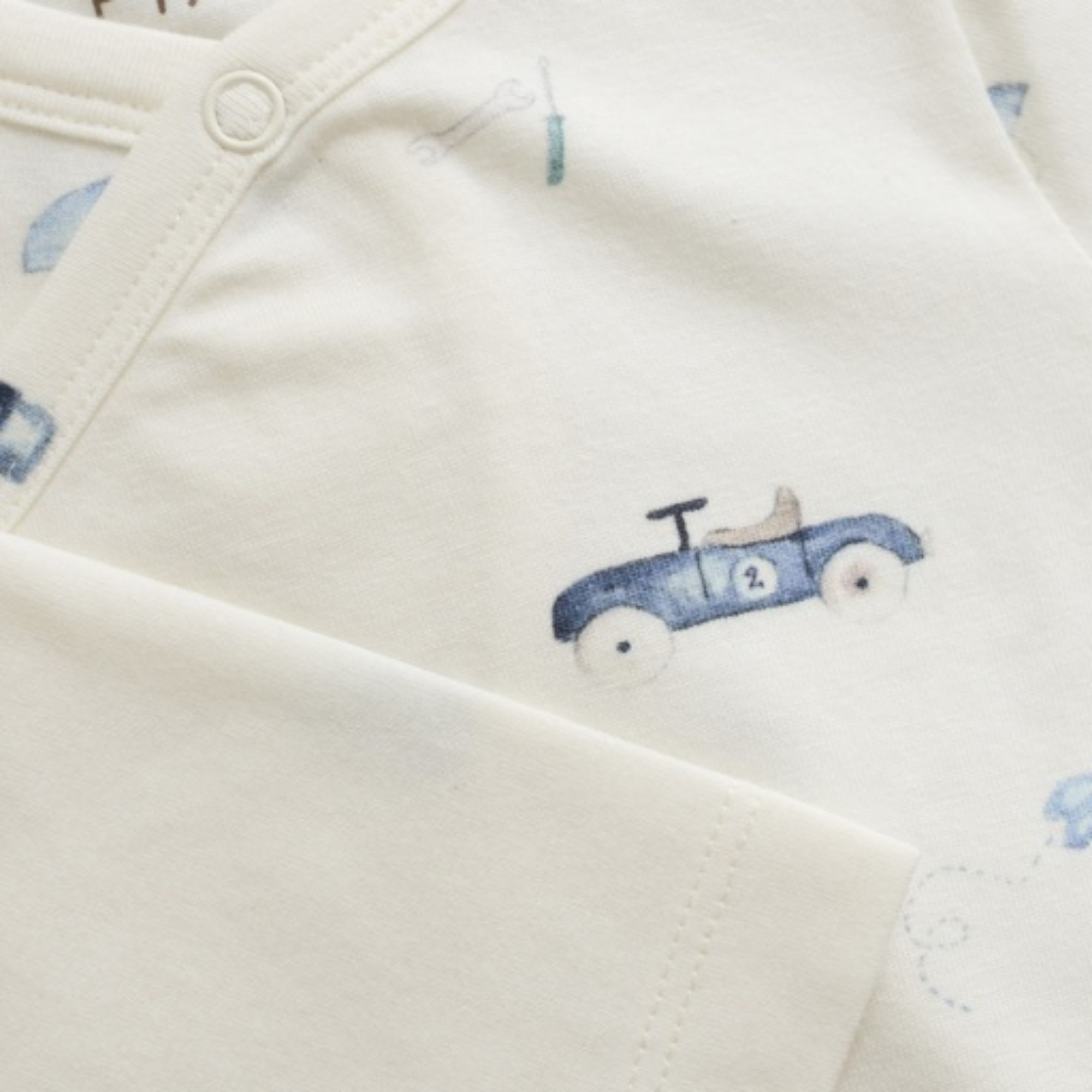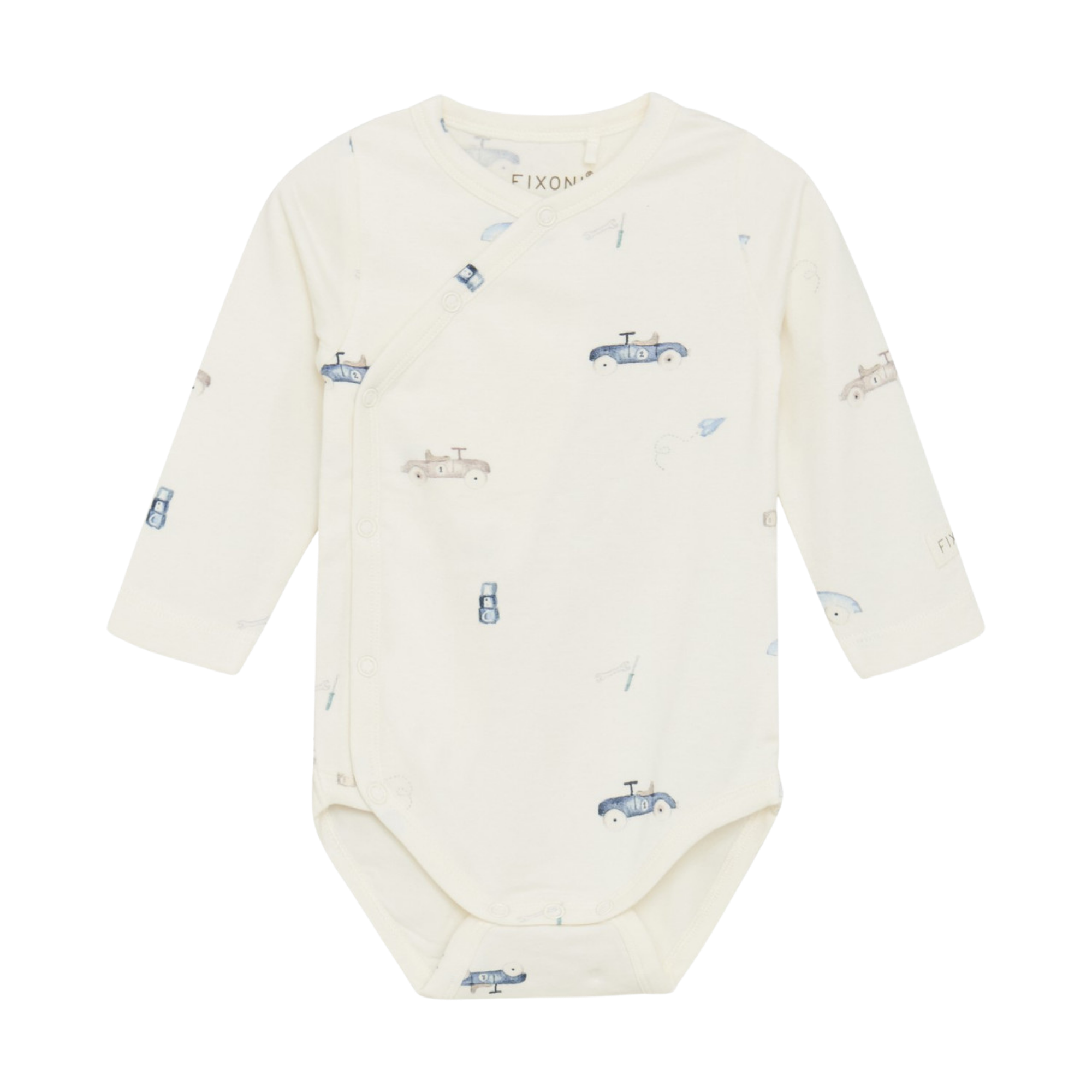 Long-sleeved wrap-around body from FIXONI. This body has all-over print and opens with practical snaps in the front and between the legs, so it can be put on and off easily. This product contains TENCEL™ fibers. TENCEL™ is a trademark of Lenzing AG