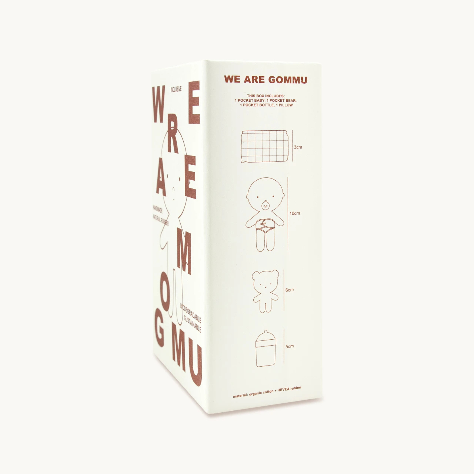 Gommu family is getting bigger or maybe should we say smaller? Find Baby Gommu in POCKET size! Baby Gommu Almond comes with its best friend bear, a bottle of milk and a cushioned pillow for nap time. All these toys in one carboard bed for long hours of play!