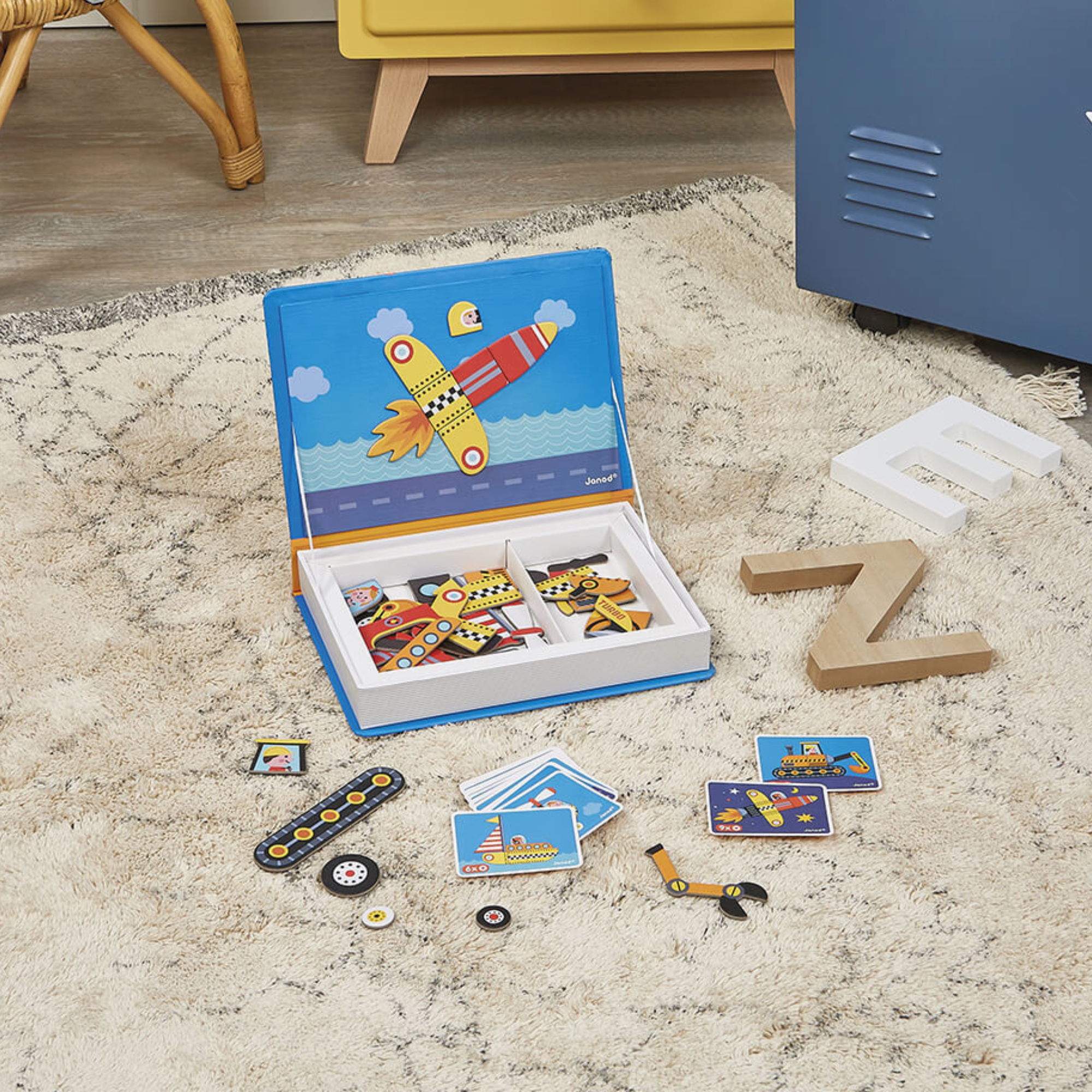 - Alone or with others, the Magneti'book racing cars allow children to manipulate pieces and assemble them to create anything they can think of!