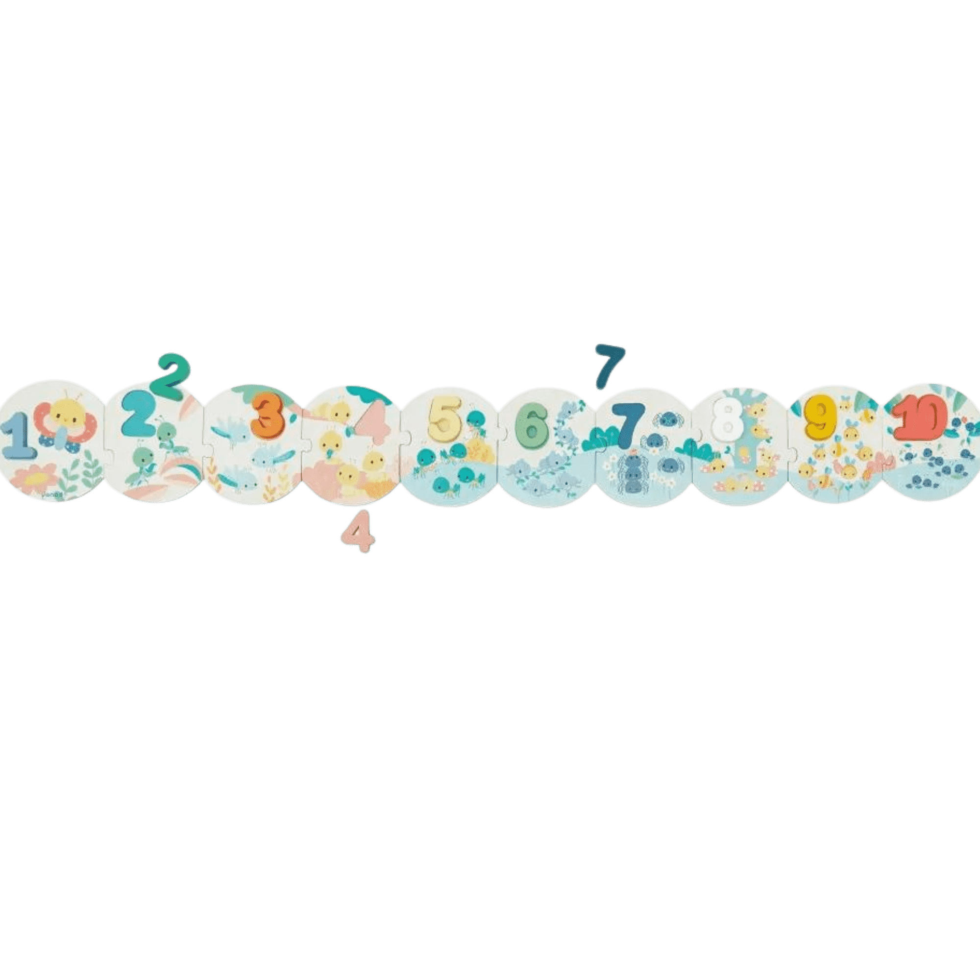 - Once this pretty pastel-coloured 10-piece puzzle has been completed, the next activity is to place each number in the right position.