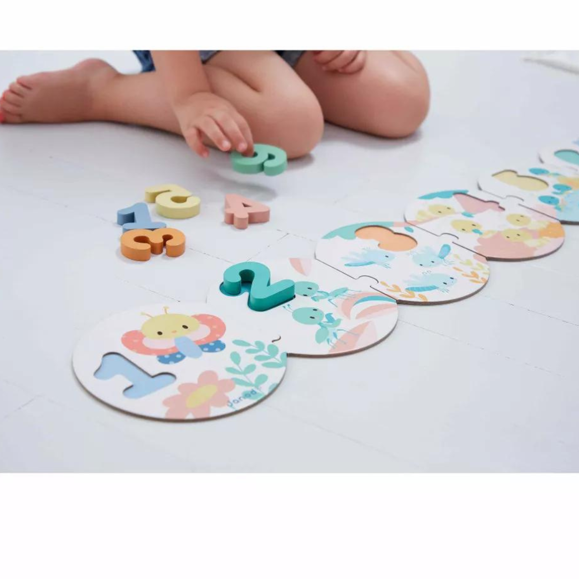 Watch little ones gradually learn to count with this magnificent cardboard puzzle, complete with colourful slot-in wooden numbers!