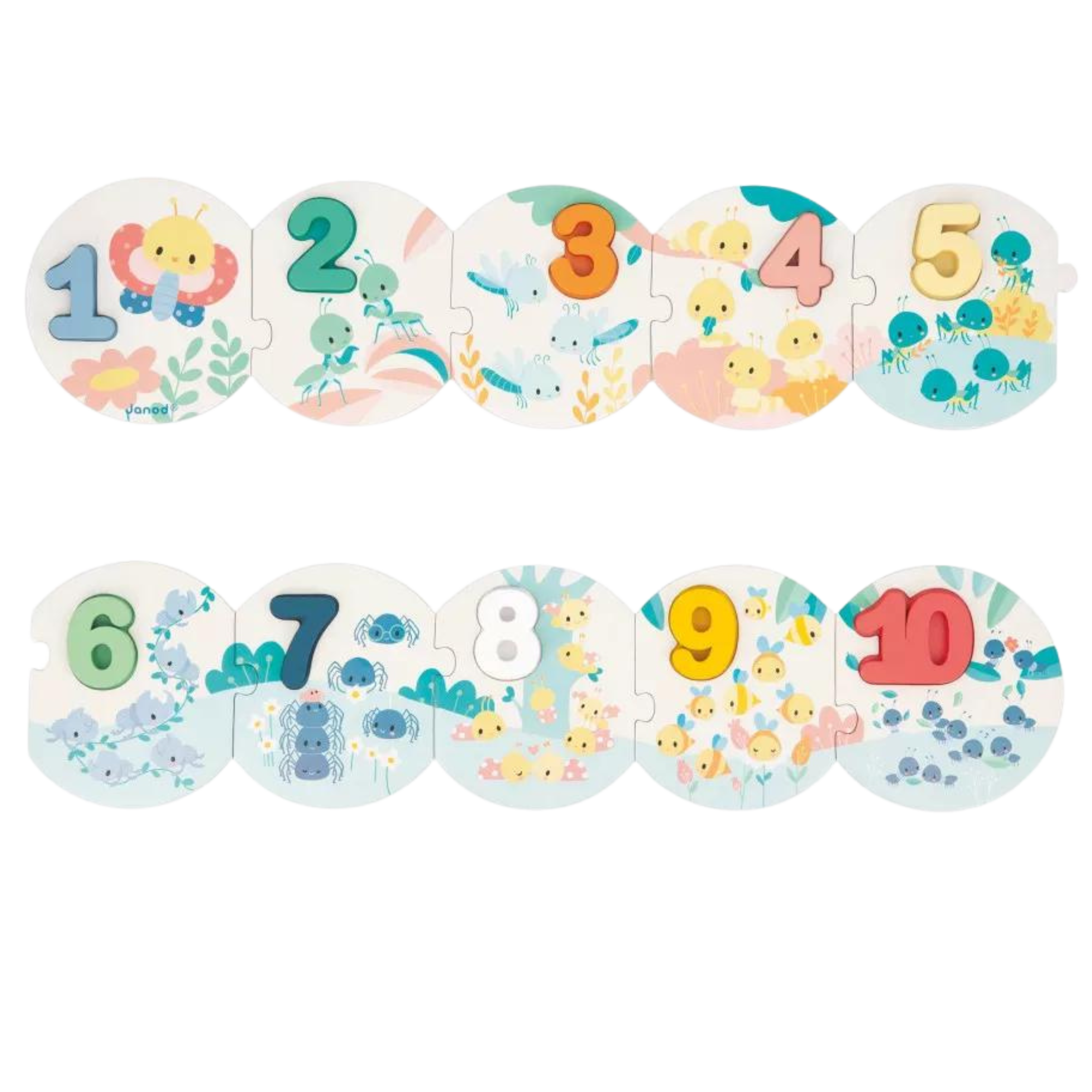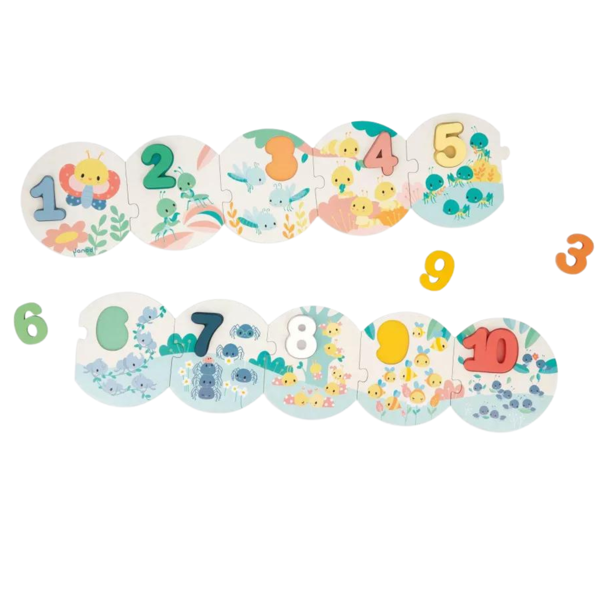 - There is of course a chronological order, but children will also be able to count the animals to determine the correct number for each piece.3 dragonflies, 8 ladybirds... and so forth!