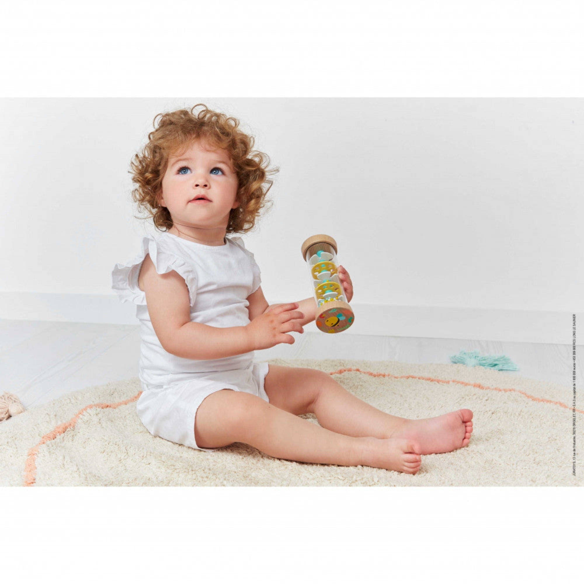 Discover the enchanting beauty of JANOD Pure Rain Stick , adorned with delicate colours and captivating spring-themed illustrations and watch your baby's curiosity come to life.