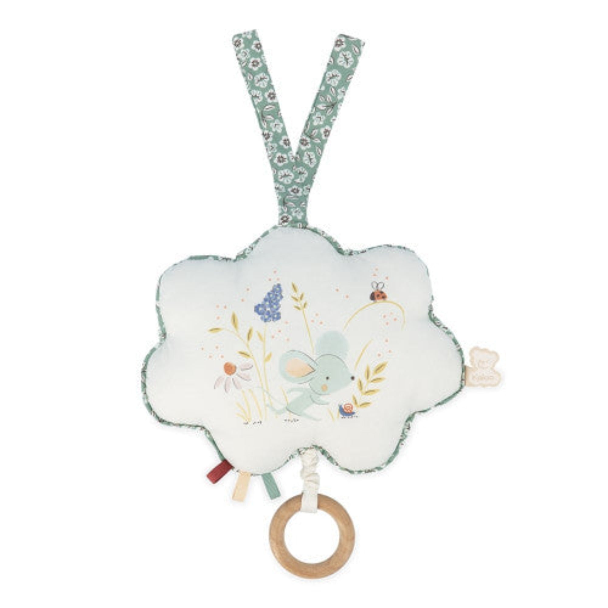 Kaloo, partner of the first times, introduces a range of musical cushions and puppets. Nursery rhymes accompanied by gestures stimulate language, attention, curiosity, but also the motor development of toddlers. Animate the puppet to the sound of music to share a special moment with your baby. Let the discovery begin! The fabric music box delicately printed and embroidered on the theme of a green mouse is a key element for baby's development. By pulling on the wooden circle at the end of the string, you will hear the nursery rhyme "A Green Mouse" so that you can sing it to your baby. Its small size of 15cm and its ribbon allows it to be carried and hung anywhere. The music case is waterproof so you can easily wash the cushion by hand without risk.