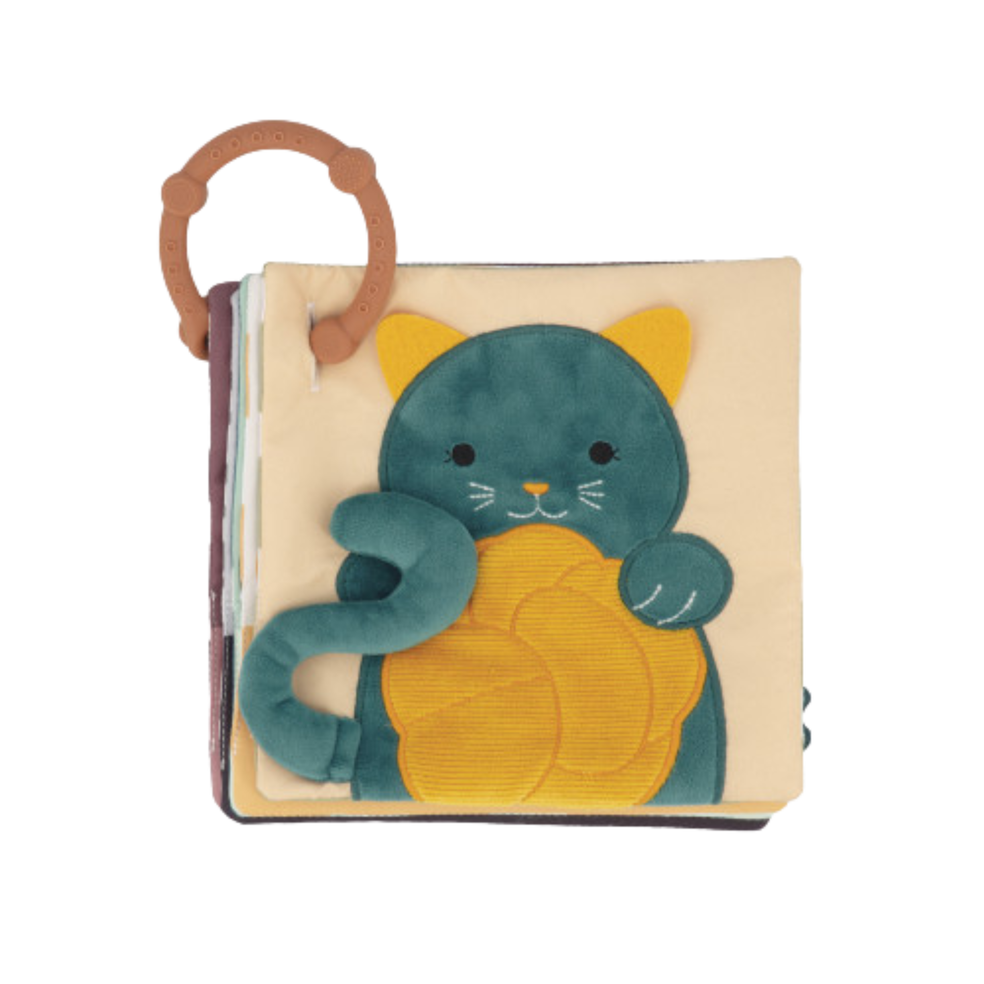 With these 5 sensory awareness cards, help baby gently develop their senses! Double-sided and detachable, it is an educational toy that stimulates baby's sight, touch, and gross motor skills. You can offer him these visual fabric cards from birth, because they have been designed to support his development in multiple ways. Indeed, they offer contrasting colors and prints, particularly perceptible by baby from birth: ideal for visual stimulation! In addition, 6 varied textures can be discovered with your fingertips (micro-velvet, corduroy, suede, looped fabric, cotton muslin, felt): they are therefore not only visual stimulation cards, but a perfect toy for develop toddler's sense of touch. They arouse his curiosity, because they are designed especially for him. Connected together by a silicone ring, they can be presented to baby like a fabric activity book, but also placed on the ground to encourage their exploration. The ring is easy to handle, and can be put in the baby's mouth like a teething ring. It is a portable sensory awareness toy, easy to carry on outings with baby. A useful birth gift, therefore, but also adorable like the little cat represented on the front. The set is machine washable at 30° and measures 18 cm high. Now complete your little one's play area, or your set of baby toys to support their development! These sensory awareness cards are part of the KALOO Stimuli range, developed in collaboration with psychomotor therapists to help babies develop their sensory and motor skills from birth.