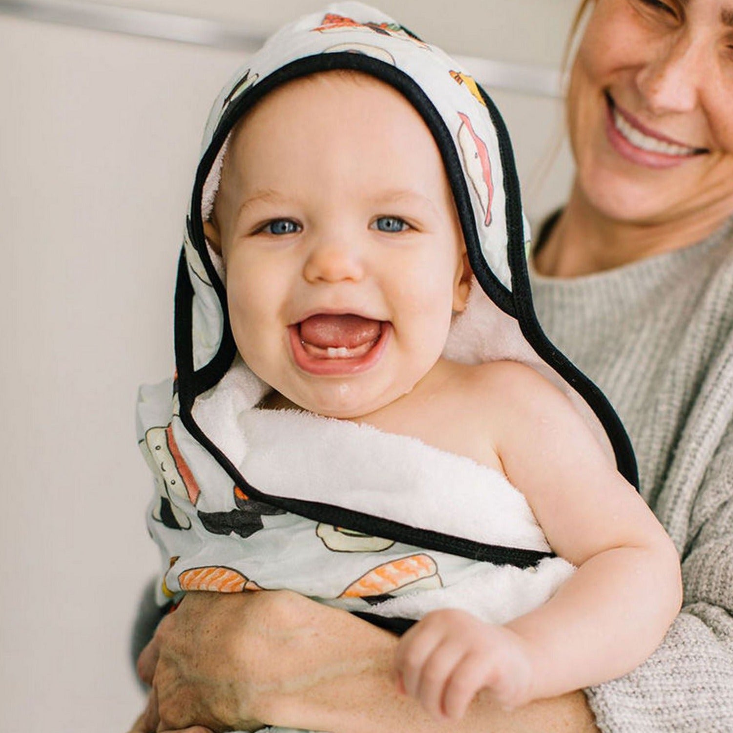 Made with buttery soft fabric and lined with ultra-absorbent terrycloth from bamboo, our muslin hooded towel set is a comfy way to kick off your little one’s bedtime routine. The generously sized towel keeps heads and hands warm thanks to the hood and pockets, while the matching washcloth is gentle on baby’s delicate skin. Perfect for the beach and pool, too!