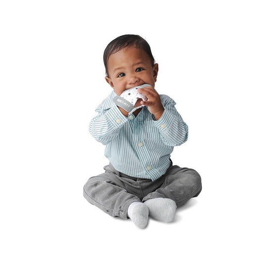 The Munch Mitt is the original, mom-created teething mitten that babies love. A ‘handy’ solution for infants of all ages and sizes, the Munch Mitt provides relief from teething pain in a safe, easy-to-clean product that goes wherever they do. Suggested age range 3-7 months.