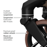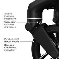 - ALL-TERRAIN PERFORMANCE : Puncture-proof wheels and 4-wheel CosiCruise suspension deliver smooth, effortless rides on any surface—from bustling city streets to snowy paths in Canada’s wintery climate.