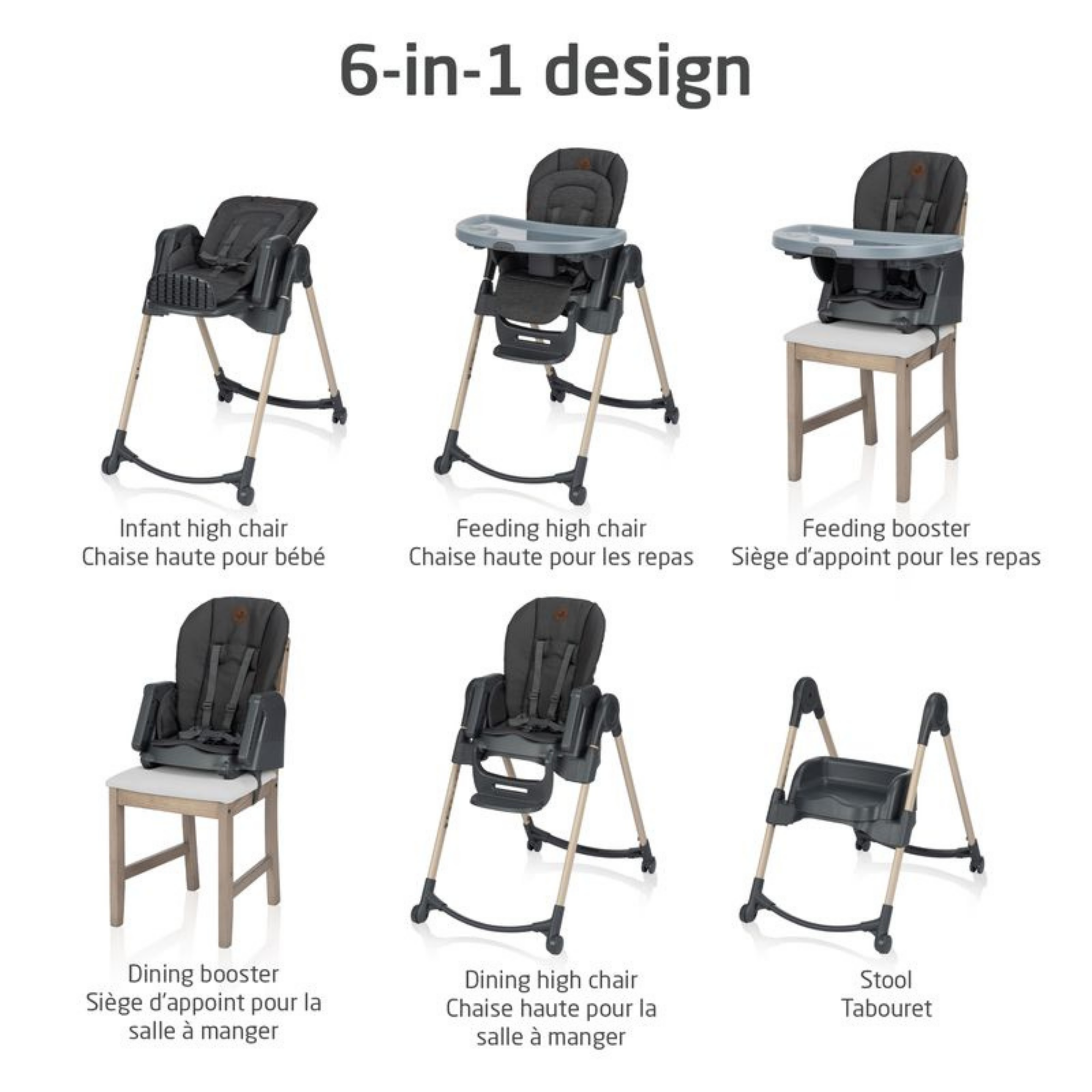 - 6-IN-1 MODES OF USE :Transforms through six distinct stages, adapting from an Infant High Chair to a Feeding High Chair, Feeding Booster, Dining Booster, Dining High Chair, and finally to a Stool, supporting your child from birth up to six years old.