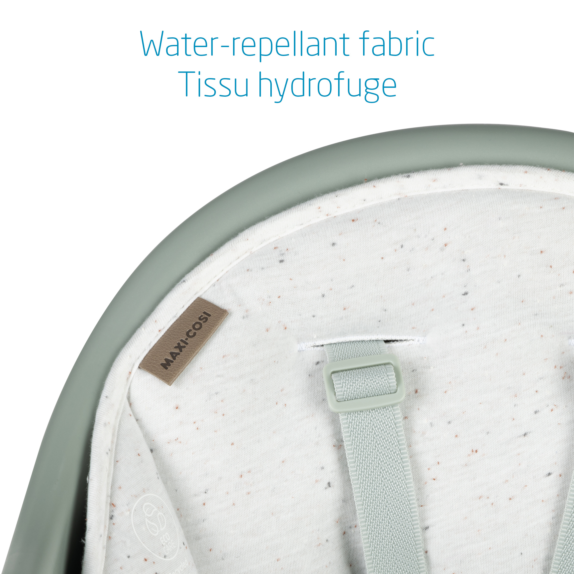 Practicality meets comfort with a water-repellant, machine-washable seat inlay, making cleanup quick and easy after every meal. The removable, dishwasher-safe tray simplifies post-mealtime routines, while the 2-level adjustable footrest supports your child’s posture and comfort as they grow.