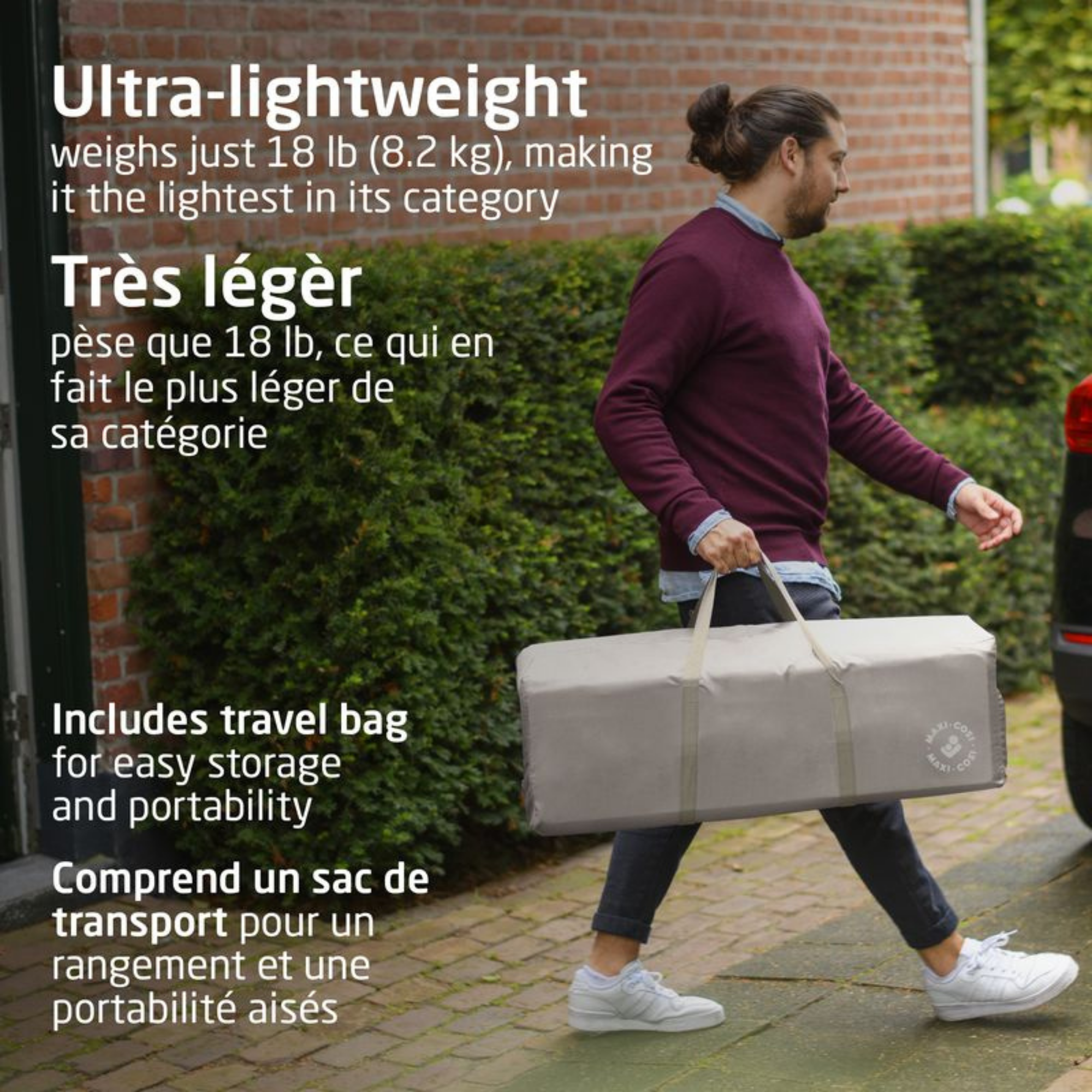 With a smooth one-step fold, Swift sets up or packs away in seconds – so quick, you can do it with just one hand. The included travel bag ensures easy portability for family outings or weekend trips.