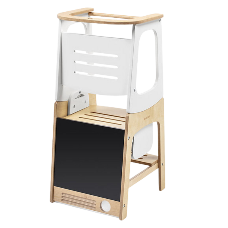 From kitchen helper to aspiring artist, Toucan’s 3-in-1 design opens a world of possibilities for your little one. Join the kitchen fun in learning tower mode, unleash their creativity on the integrated blackboard in table and chair mode, and watch them reach for new heights with the stepping stool option.