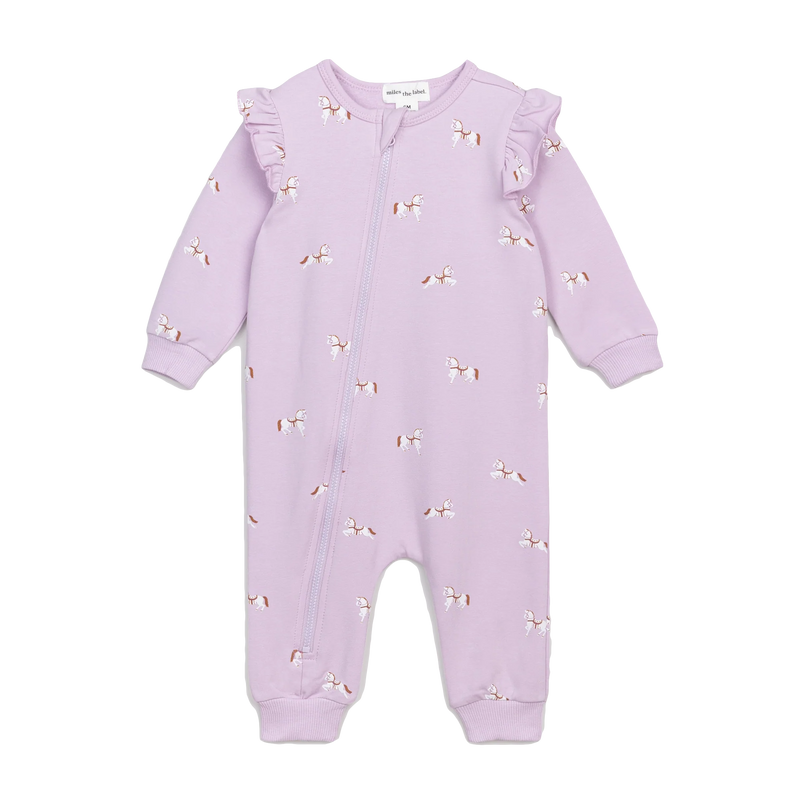 Made from French Terry, it’s light and flexible so she has the freedom to play, crawl and explore. The elasticated cuffs and ankles help to keep her warm and on extra chilly days the playsuit can be layered with a sweater from the same range. To make changing quick and easy, the romper is fitted with a full-length zipper with a fabric zip guard to protect her chin. To finish the piece, ruffle detailing on both shoulders adds a feminine twist to this classic playsuit style.