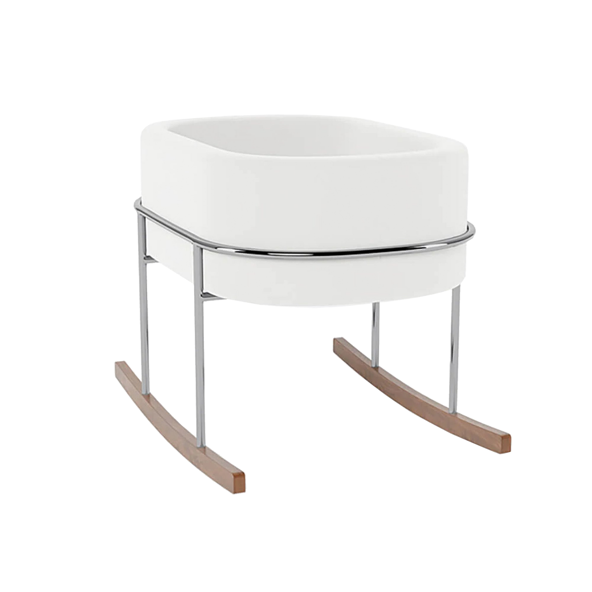 This modern rocking bassinet makes it easy to sooth your child as they drift off into sleep. The Monte Design Rockwell Bassinet is handcrafted with beautiful luxury materials including a chrome stand and chemical-free foam. The bassinet’s sleek oval basket gently cradles your child (mattress included) over a solid rocking walnut base. Give your child the gift of a great night’s sleep with this stylish and unique item.