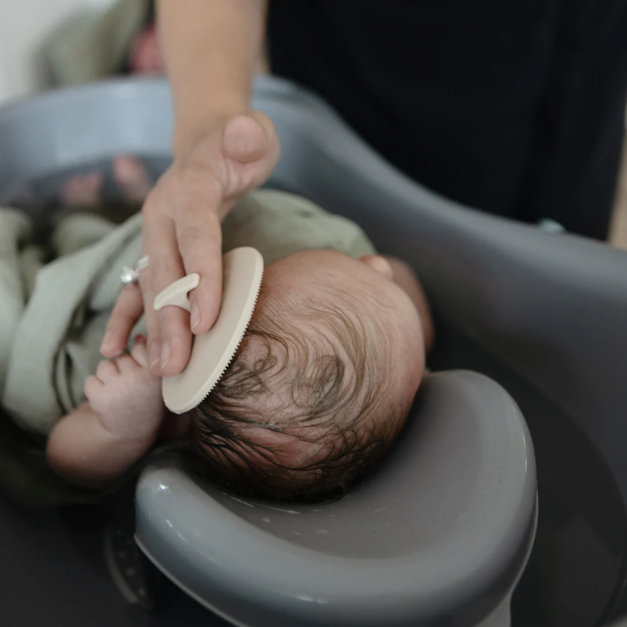 Make bath time a breeze for parents and babies with our soothing and effective cradle cap brush. Specifically designed for your little one's delicate skin, the soft silicone bristles gently massage while removing cradle cap flakes and exfoliating from head to toe. This brush fits in the palm of your hand and features an ergonomic finger grip for added comfort and control.