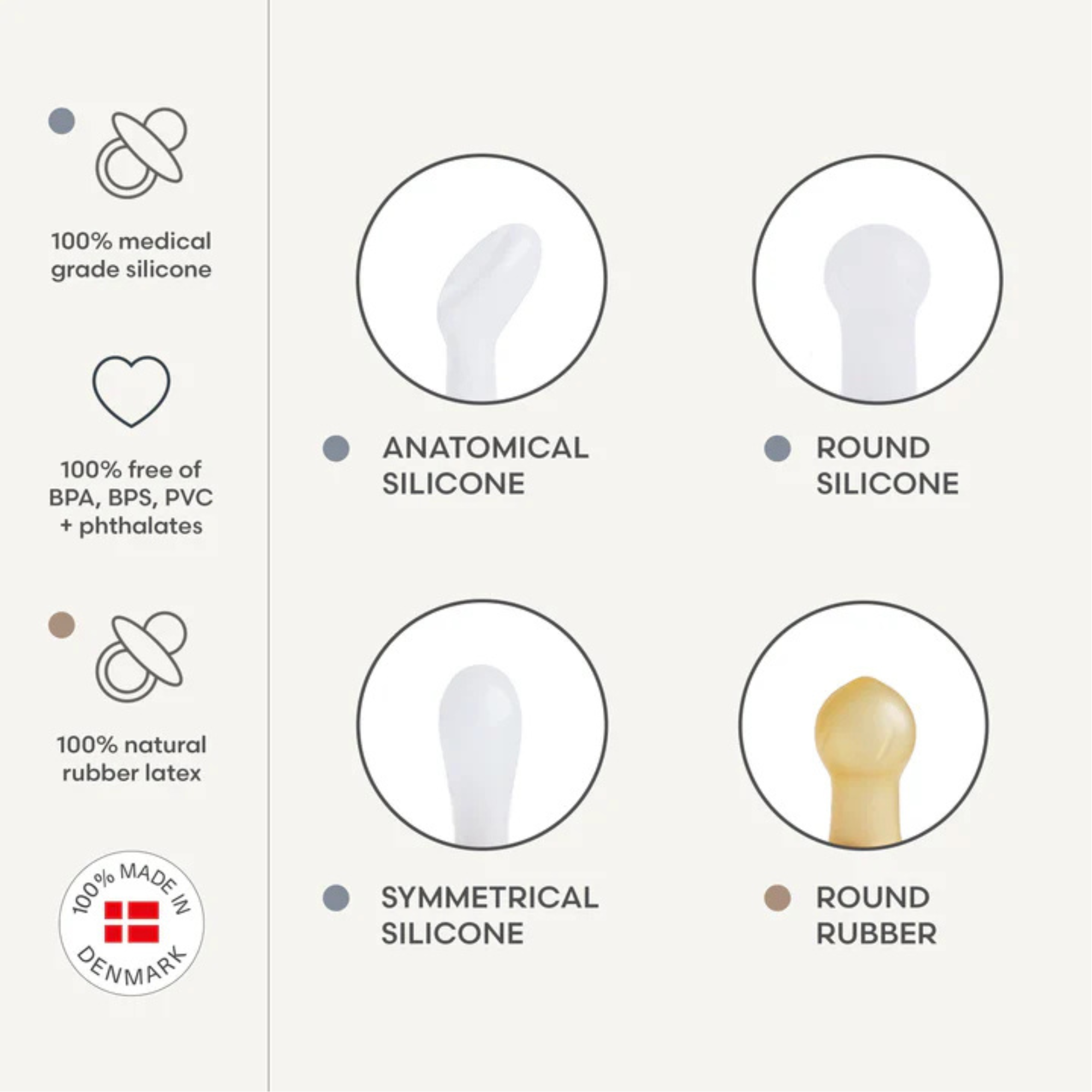 Keep your baby comfy and safe—shop MUSHIE Frigg Natural Rubber Snowflake Dream Pacifier (4-Pack) now at Kido Bebe !