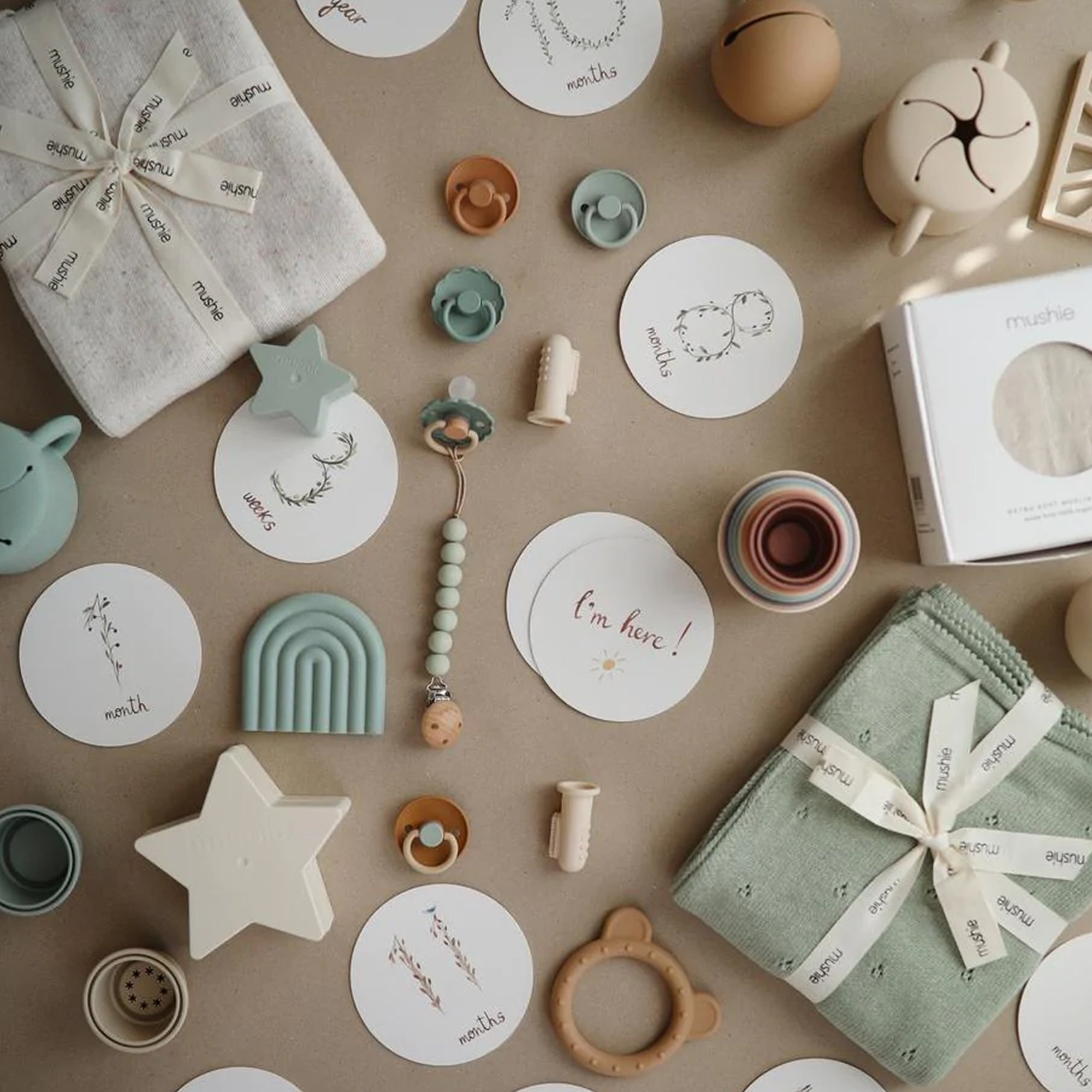Document the growth of your new baby with this set of 16 beautifully-illustrated milestone cards, lovingly designed in Sweden. Each double-sided card displays whimsical watercolor designs and dedicated space for you to capture memories, thoughts, and notes to your baby as they grow.