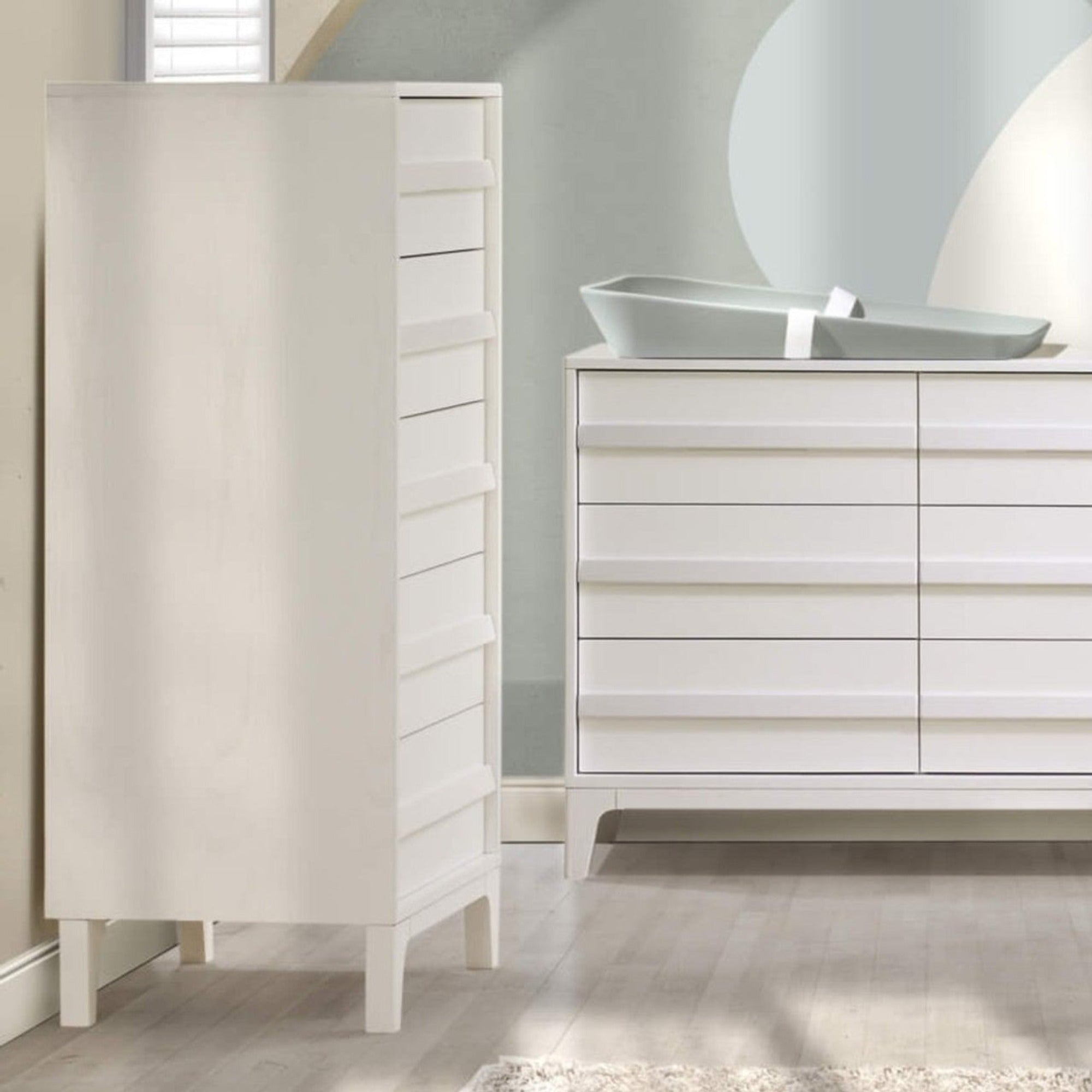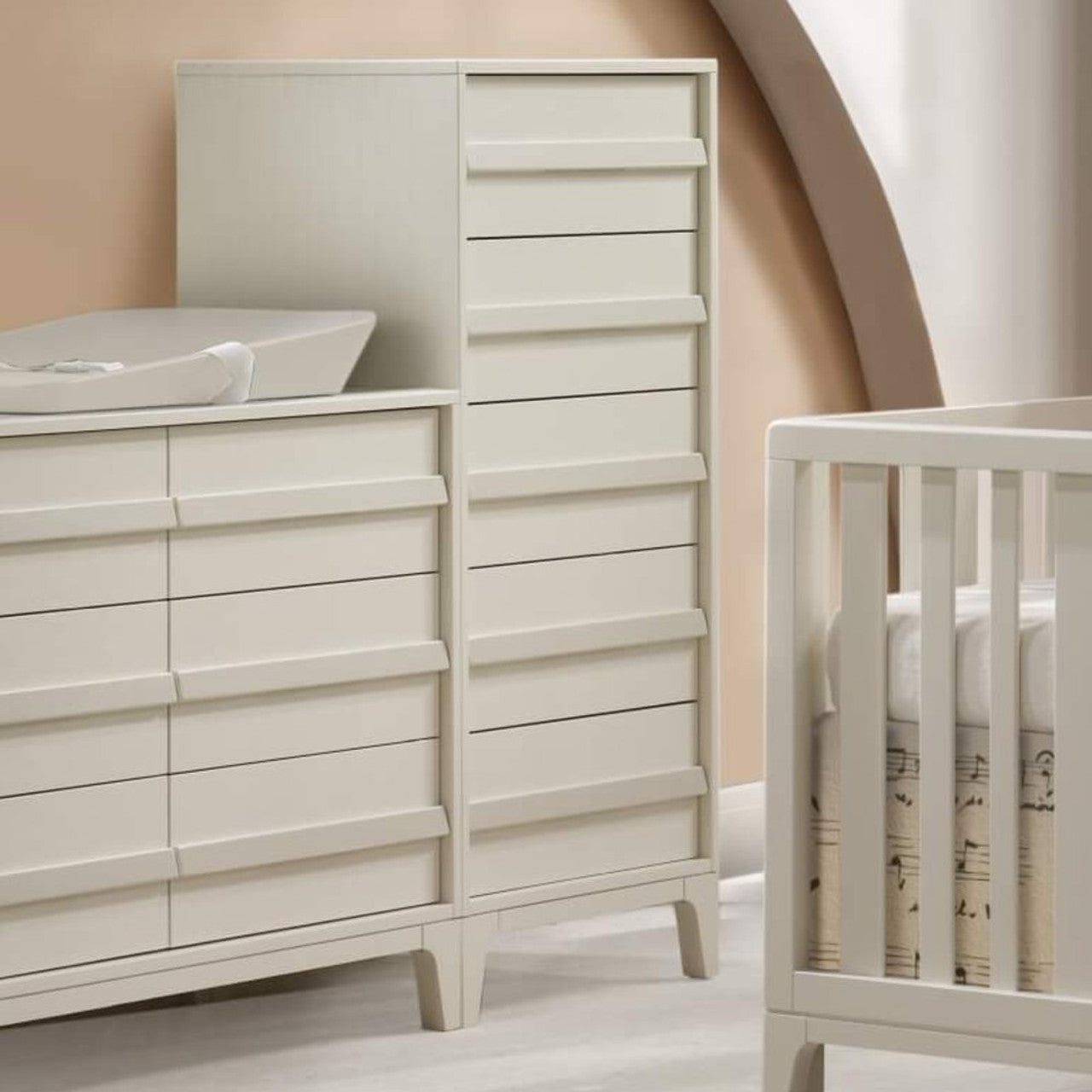The non-protruding top of the Double dresser allows to place the Lingerie Chest directly next to it, creating a practical and design oriented configuration with simplicity and purity of lines. Another way of arranging the nursery and creating a Zen and natural atmosphere.