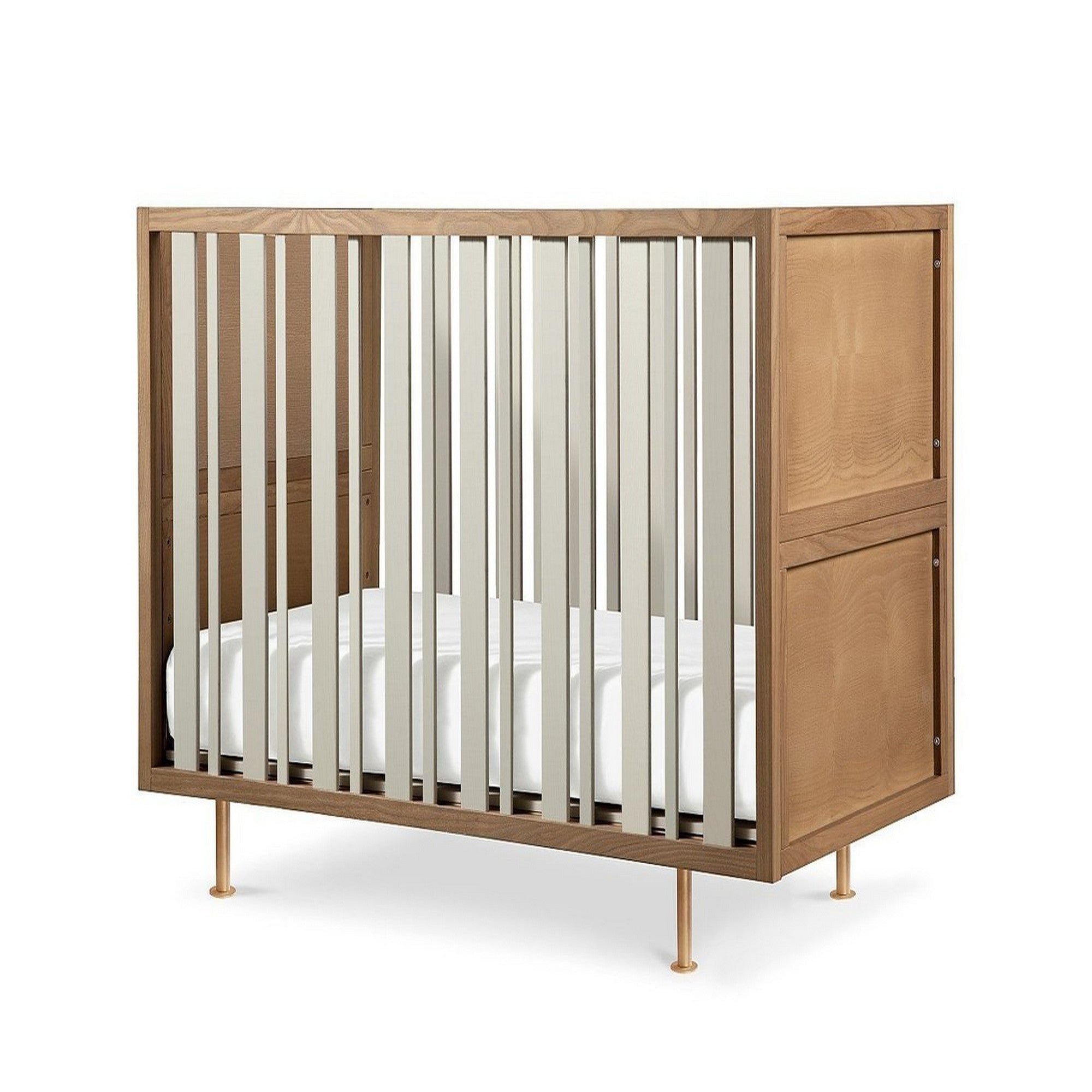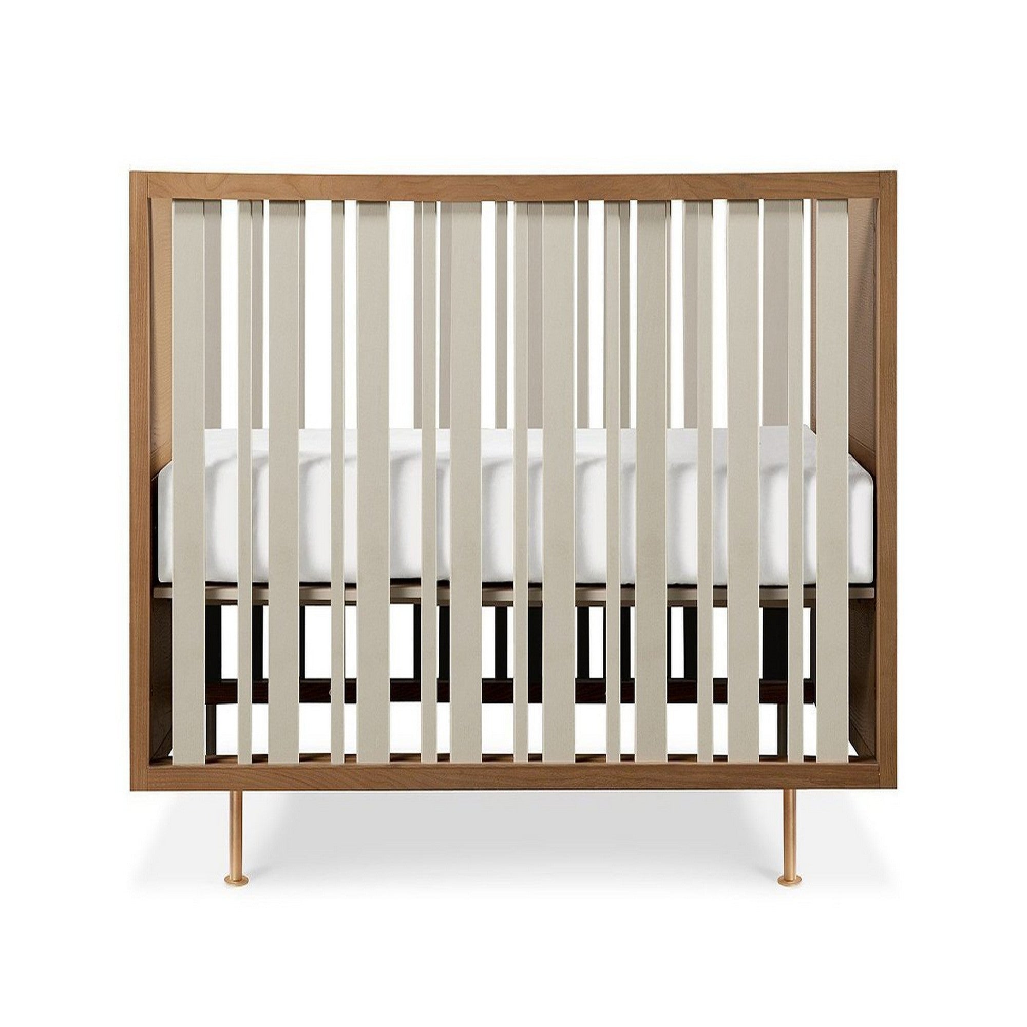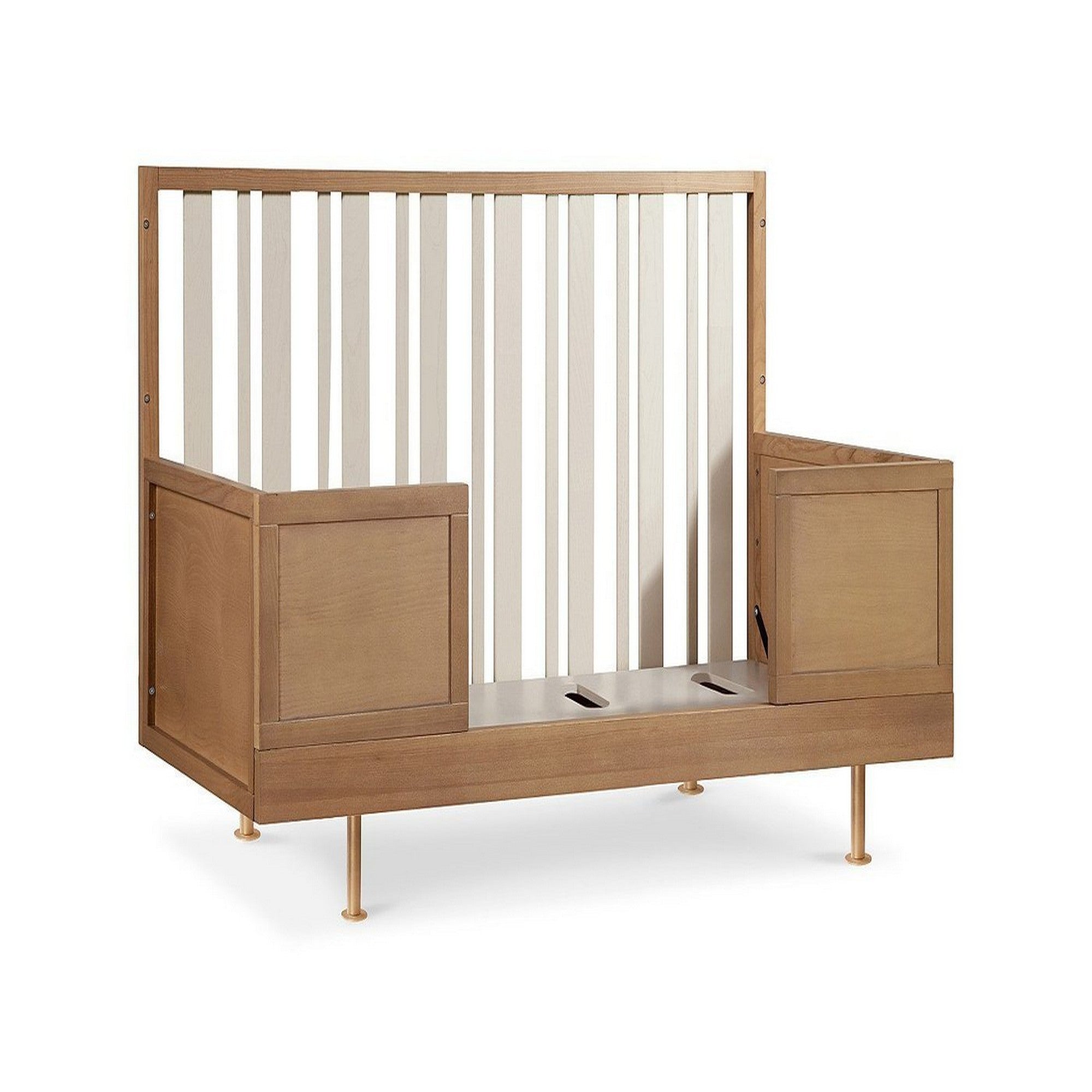 This highly-versatile piece of furniture was designed to fit your child from infancy into elementary school. The Nursery Works Novella Crib with Toddler Bed Conversion Kit not only expands with your child as they grow (without any additional purchases), but can be converted into a reading nook with the purchase of the Reading Nook Cushions. The Novella’s solid ash frame and brass plated legs also offer a modern touch to your nursery.