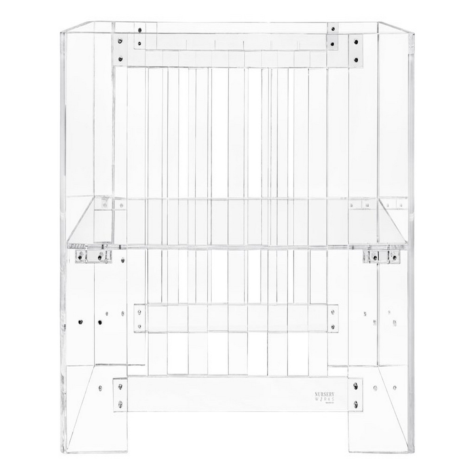 One of Nursery Works’ signature items, this mini crib is a smaller alternative to the Vetro Crib, the first 100 percent recyclable, non-toxic acrylic crib on the market. The Vetro Mini’s futuristic design allows you to remain environmentally conscious without having to sacrifice style or utility. Just like the original, this crib is part of a limited collection, each of which is handcrafted and laser-etched with its own unique edition number.