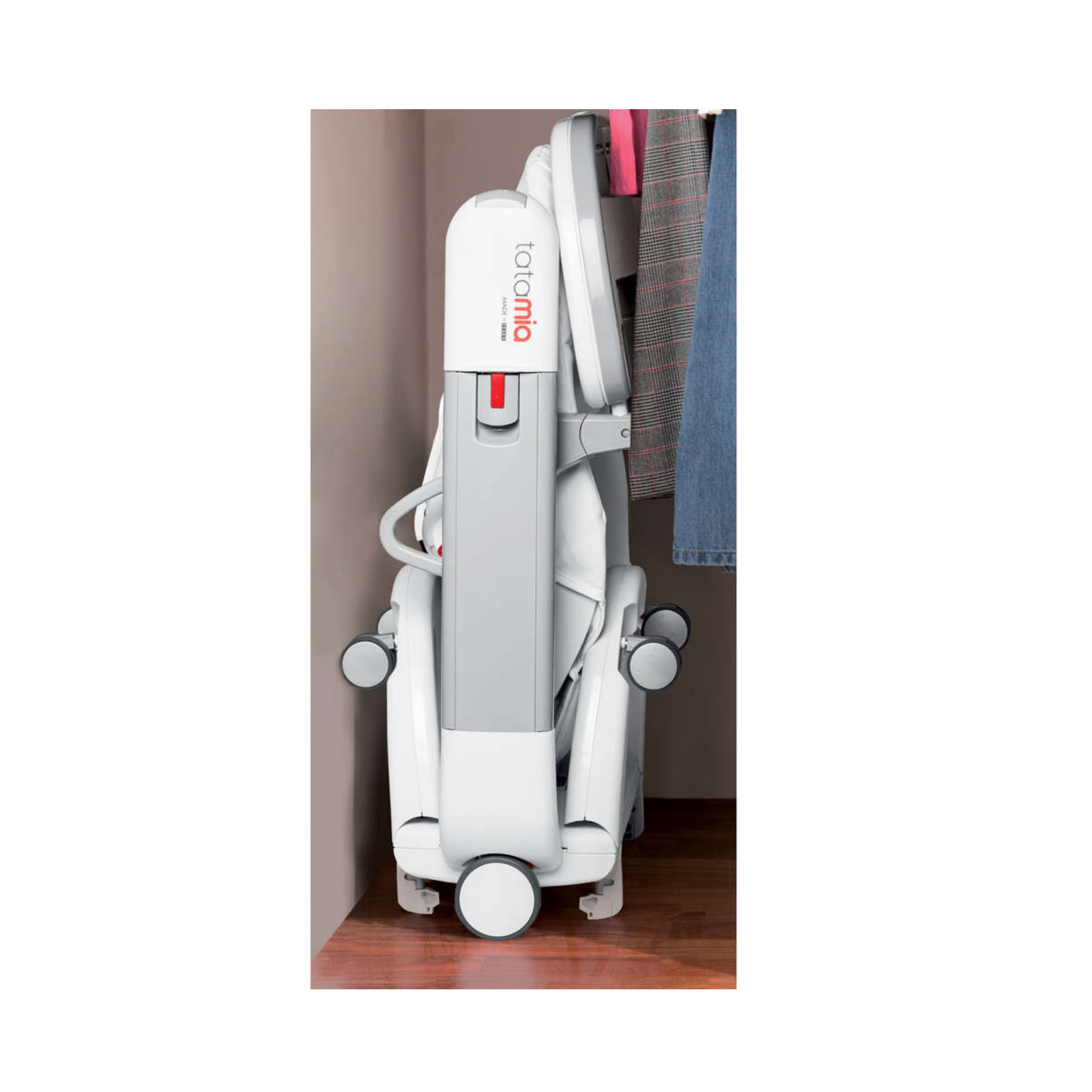 Thanks to the Stop&Go system, Tatamia follows you everywhere and the brake blocking system is big brother proof!