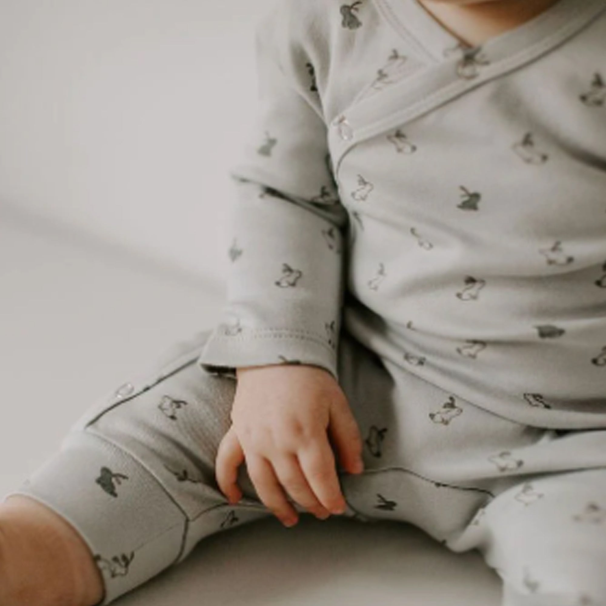 PEHR Organic Cotton Front Snap Kimono Romper - Hatchling Bunny