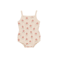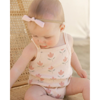 QUINCY MAE Waffle Cinch Romper - Tulips