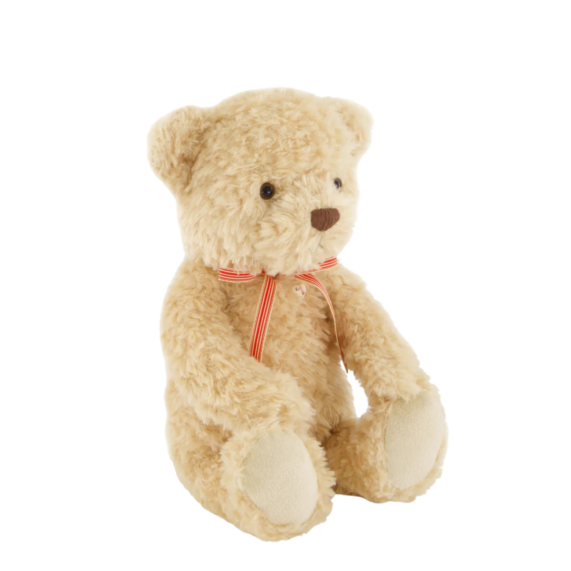 Meet Arthur the Bear, a thoughtful little friend who loves fishing, baking sweet treats, and practicing his times tables. With his soft beige fur and a classic red stripe bow, Arthur is ready for endless cuddles and imaginative adventures – just don’t crowd his favourite fishing spot!