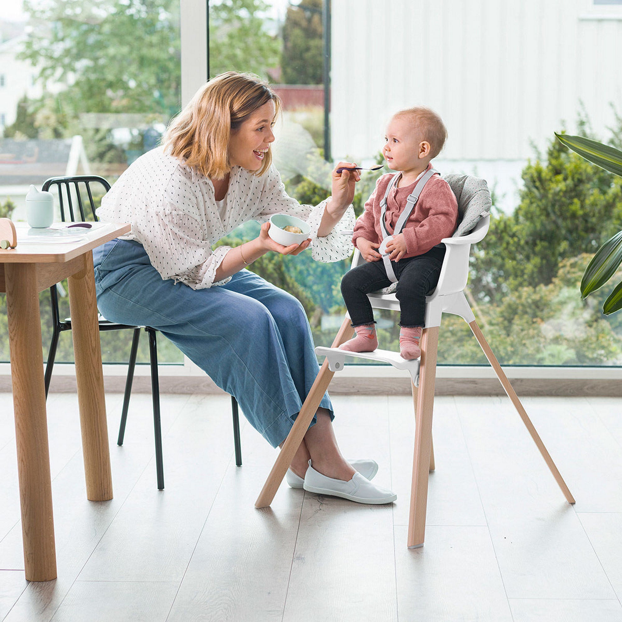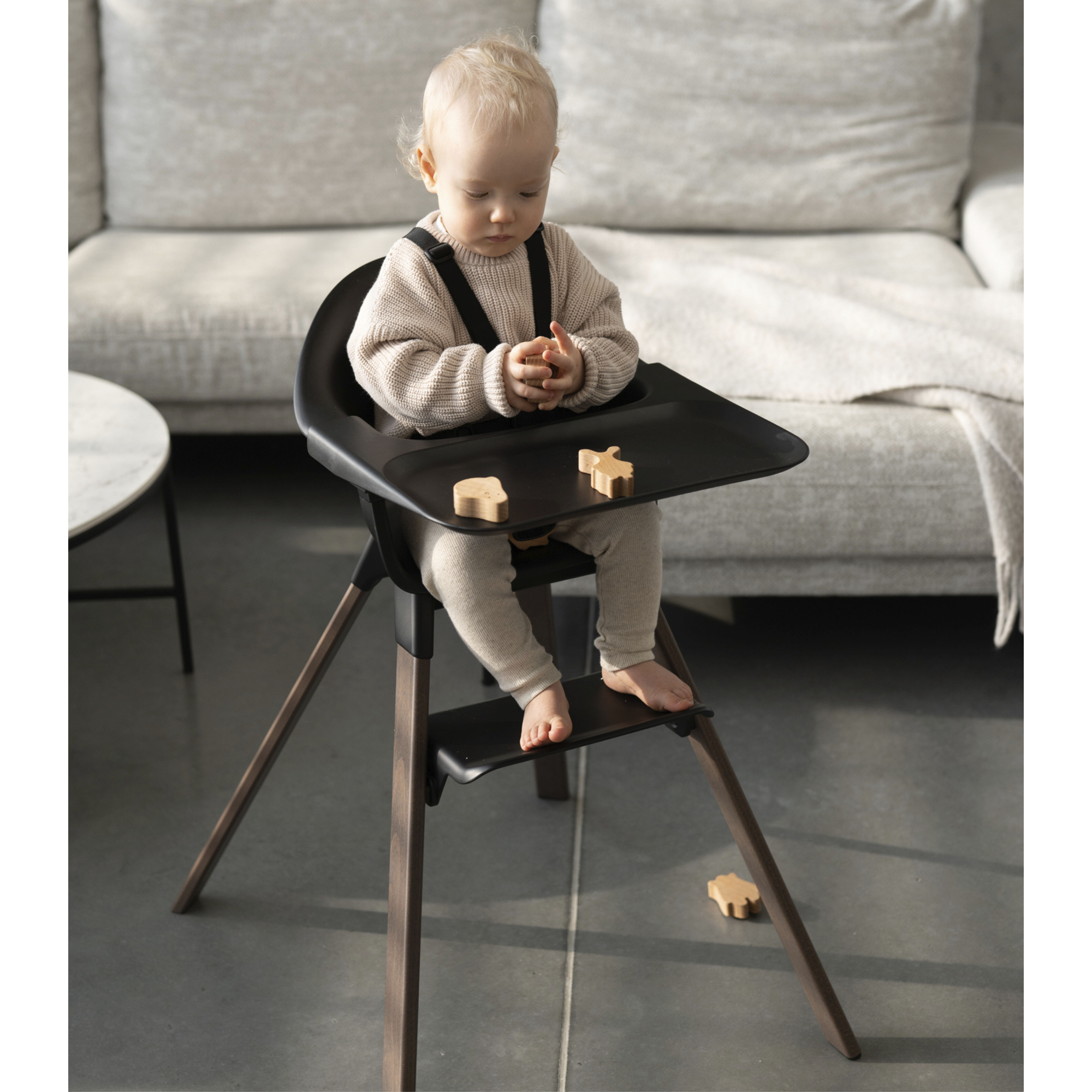 Clean, contemporary design, without any nooks or crannies, means no more scrubbing and digging out the secret leftovers of your baby’s wandering hands. Simply wipe clean and pop the tray into the dishwasher at the end of your day. Stokke® Clikk™ can be used from 6 months to 3 years with no extra purchases or fiddly adjustments. Three, simple-to-adapt configurations offer optimal back and leg support for comfort and ergonomics at each age. The deliberately minimalistic design offers the best balance of space and safety. Stokke® Clikk™ allows for proper strengthening of the spine, natural movements and supported exploration as your baby learns and develops alongside you at the family dining table.