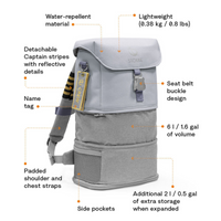 - What's included : Backpack - Detachable captain stripes - Pull out seat pad