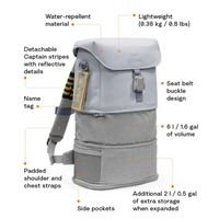 Parent perfectAll in one: includes everything you need - backpack, name tag, and seat padEasy care: easy to wipe clean thanks to its water repellent materialTravel friendly: lightweight and compact