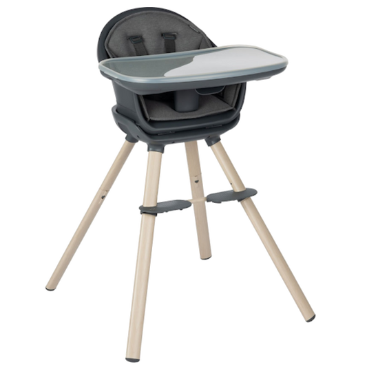 - Solid construction and European beech wood can hold up to a 242 lb adult. Safety 5- point harness provided with babyset Extended 7-year warranty available on wooden components.