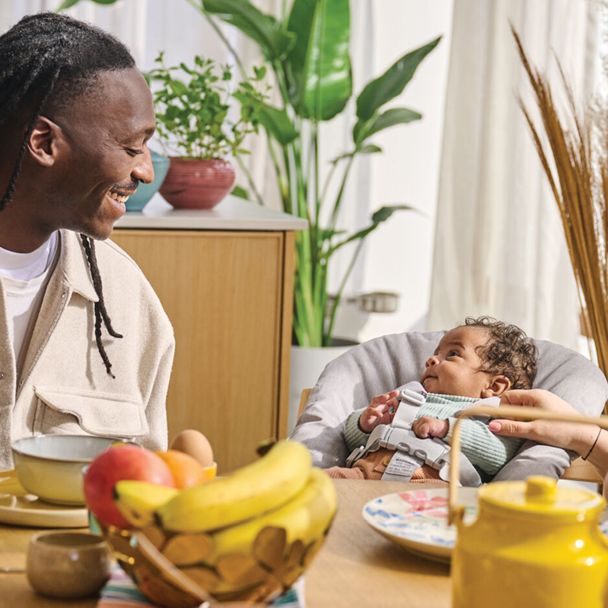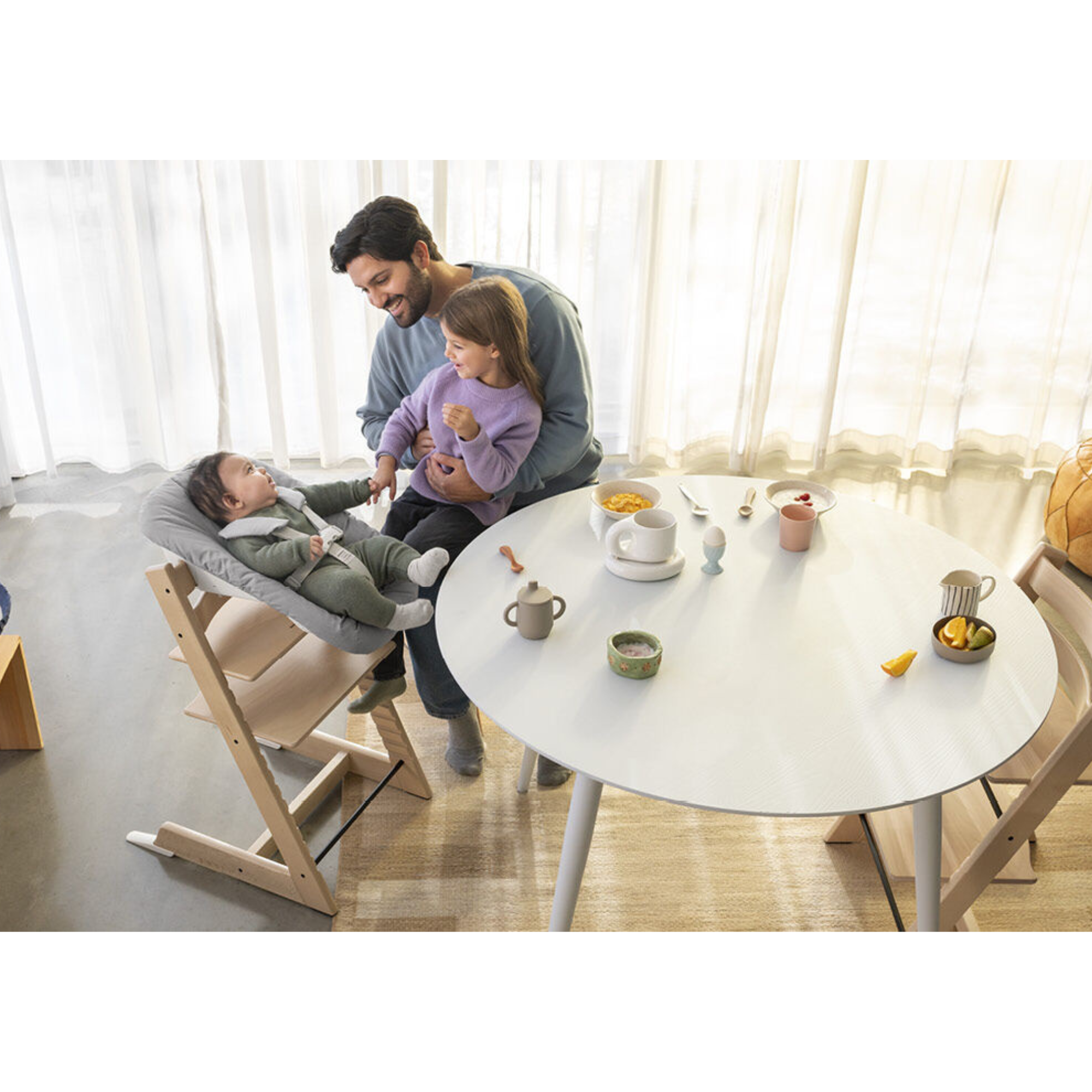Includes the Tripp Trapp® Newborn Set is designed to encourage bonding from the very beginning. Comfortable and ergonomic, it cradles your newborn, lifting them to table height. Now with 2 angle adjustable positions and excellent leg support, your little one is assured a cozy, nest-like environment they are sure to enjoy. This enables eye contact, promoting interaction during meals and gatherings around the table. It´s a great way to keep your baby close while building strong relationships with the whole family. Safe and simple to use, the Newborn Set can easily be attached and removed from the Tripp Trapp® chair. Red-green indicators reassure you that it is mounted correctly while a 5-point safety harness with protective shoulder pads keep baby extra secure. The toy hanger lets your little one keep their favorite toy close at hand to keep them entertained while helping to stimulate their evolving motor skills. Suitable from newborn up to 20lbs