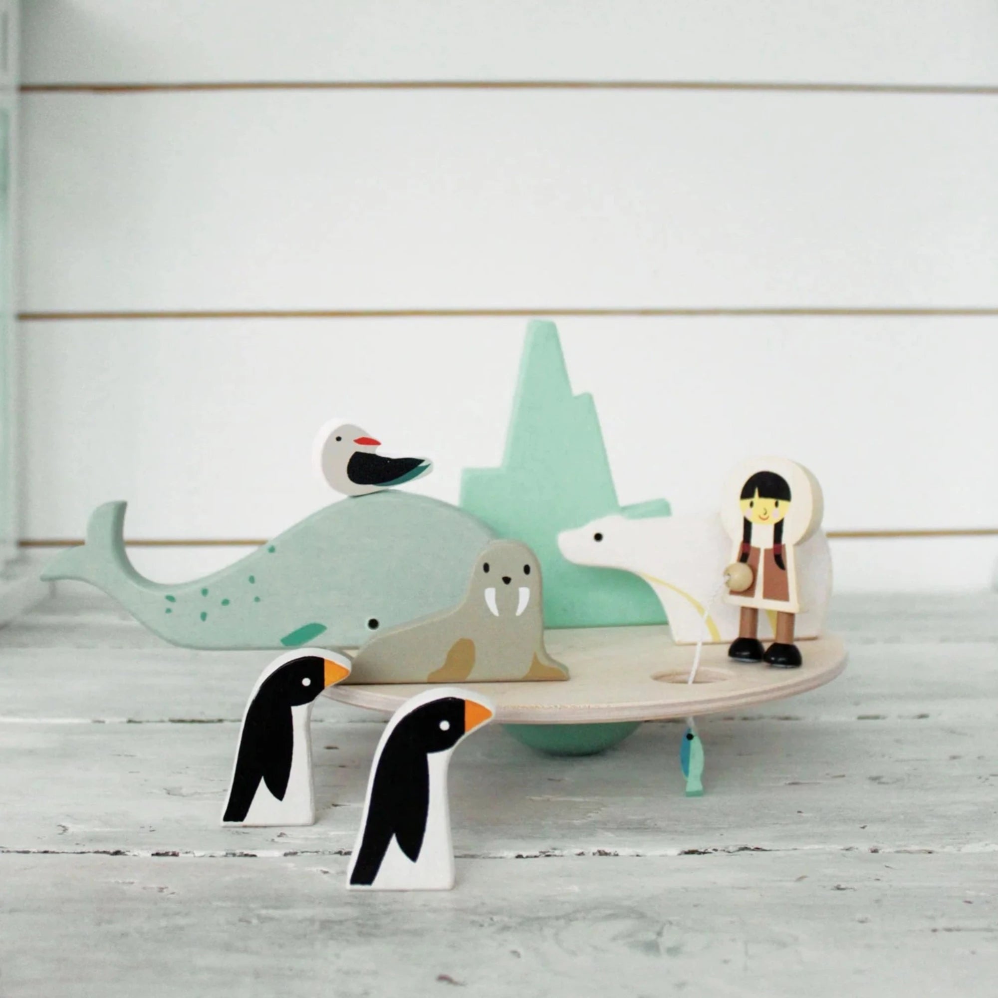 - A balancing polar circle, with 2 penguins, a whale, a walrus, a polar bear, a seagull, an iceberg and a little friendly Inuit fishing girl.
